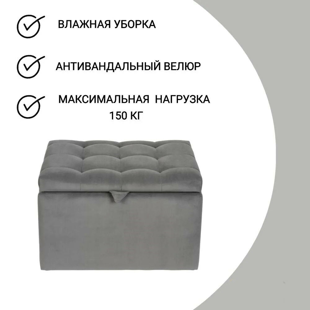 Пуфик в прихожую спальню с ящиком для хранения, 58х38х38, серый информация: