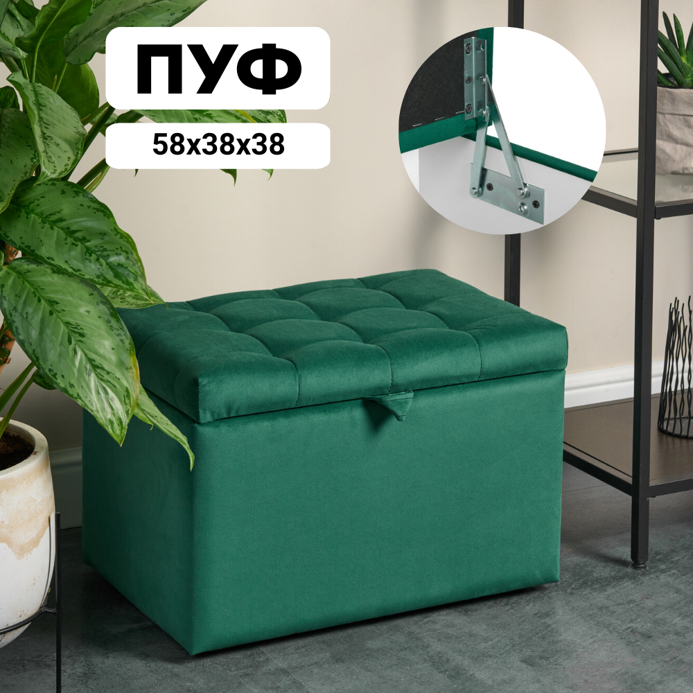 Пуфик в прихожую спальню с ящиком для хранения, 58х38х38, зеленый информация: