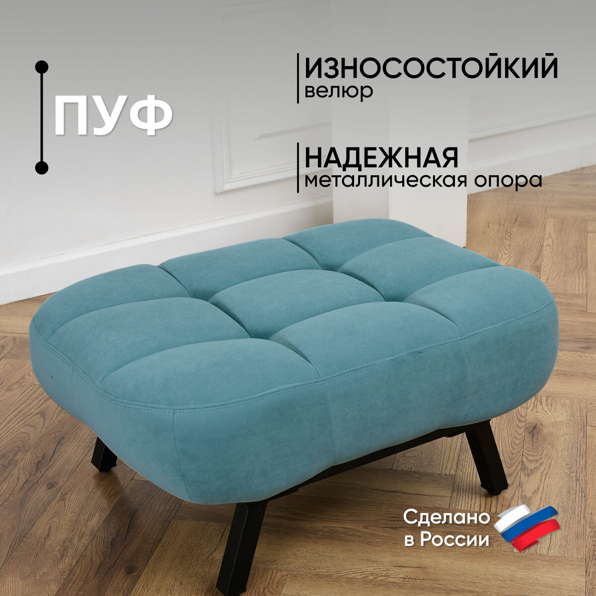 Отзывы на Пуф Brendoss 308 лофт, материал антивандальный велюр, цвет мятный