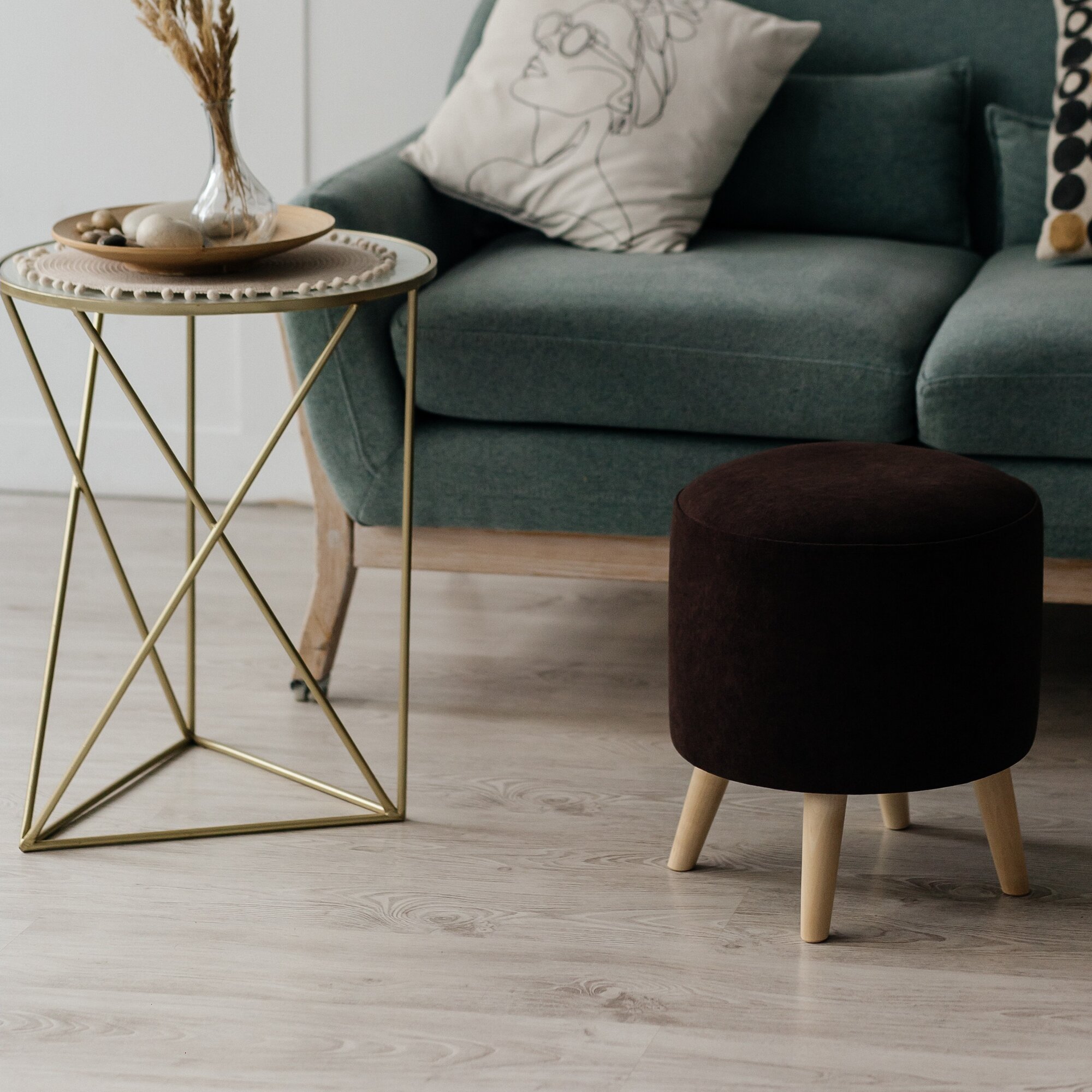 Отзывы на Пуф, коричневый, круглый, на деревянных ножках, в спальню и в прихожую