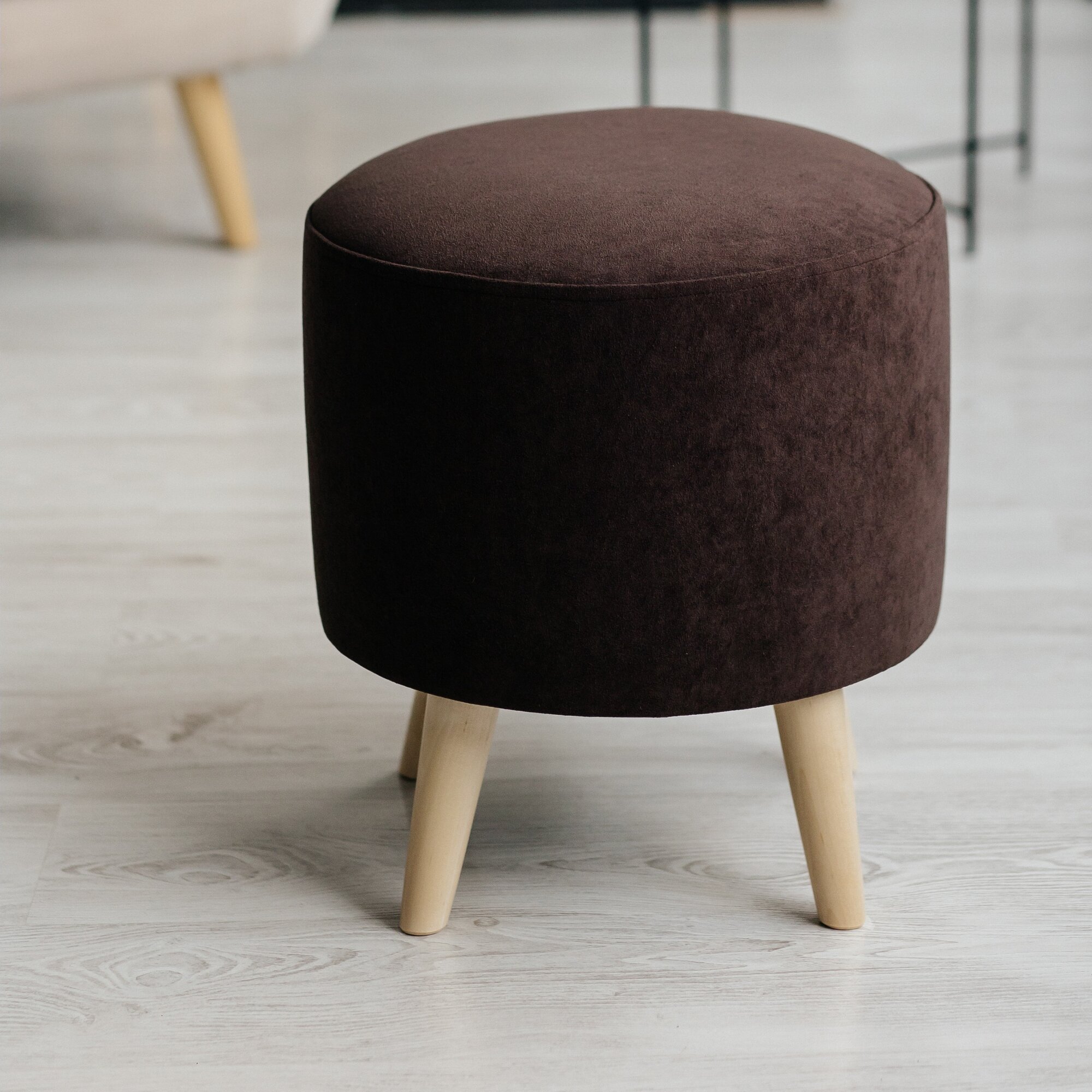 10 цен на Пуф, коричневый, круглый, на деревянных ножках, в спальню и в прихожую