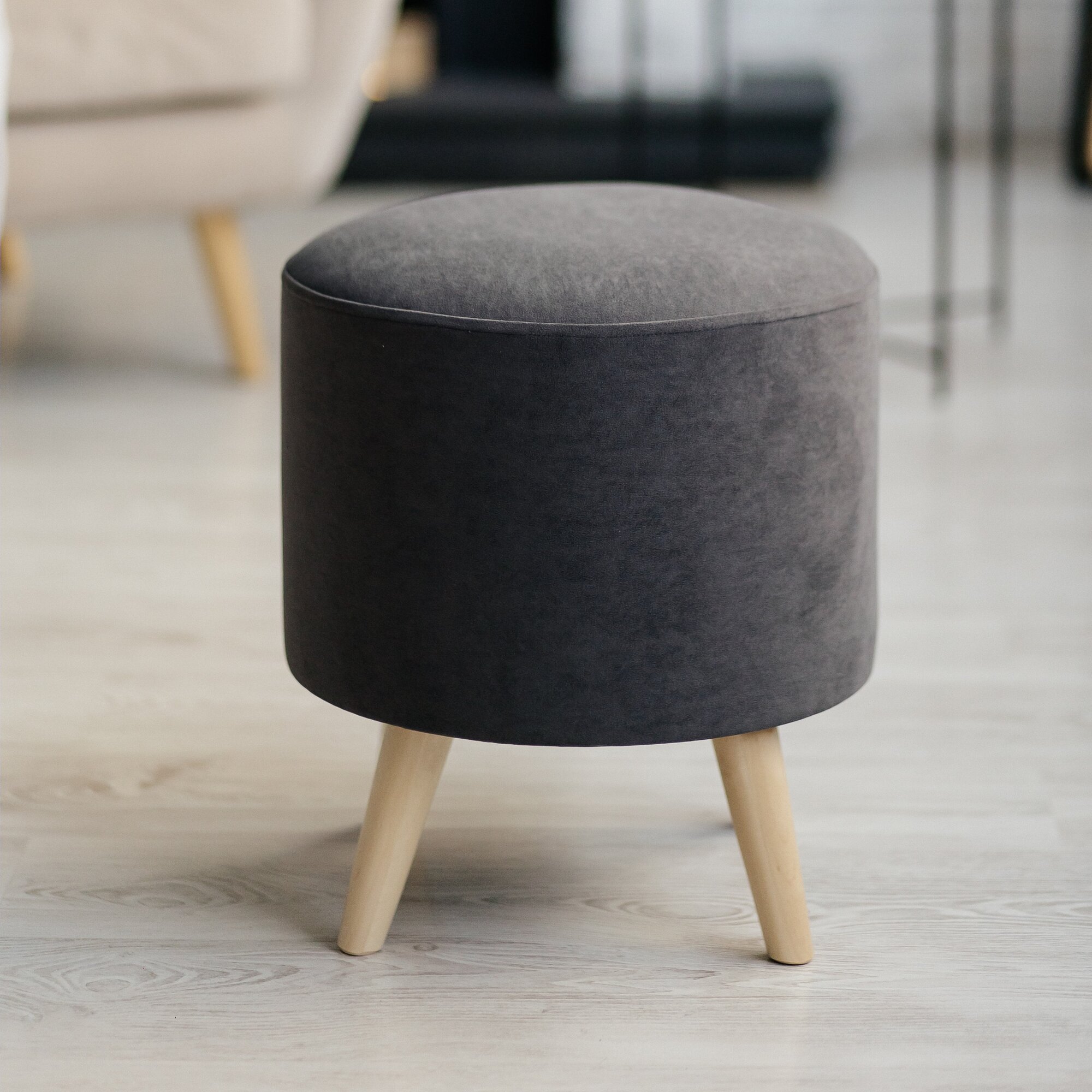 Отзывы на Пуф, серый, круглый, на деревянных ножках, в спальню и в прихожую