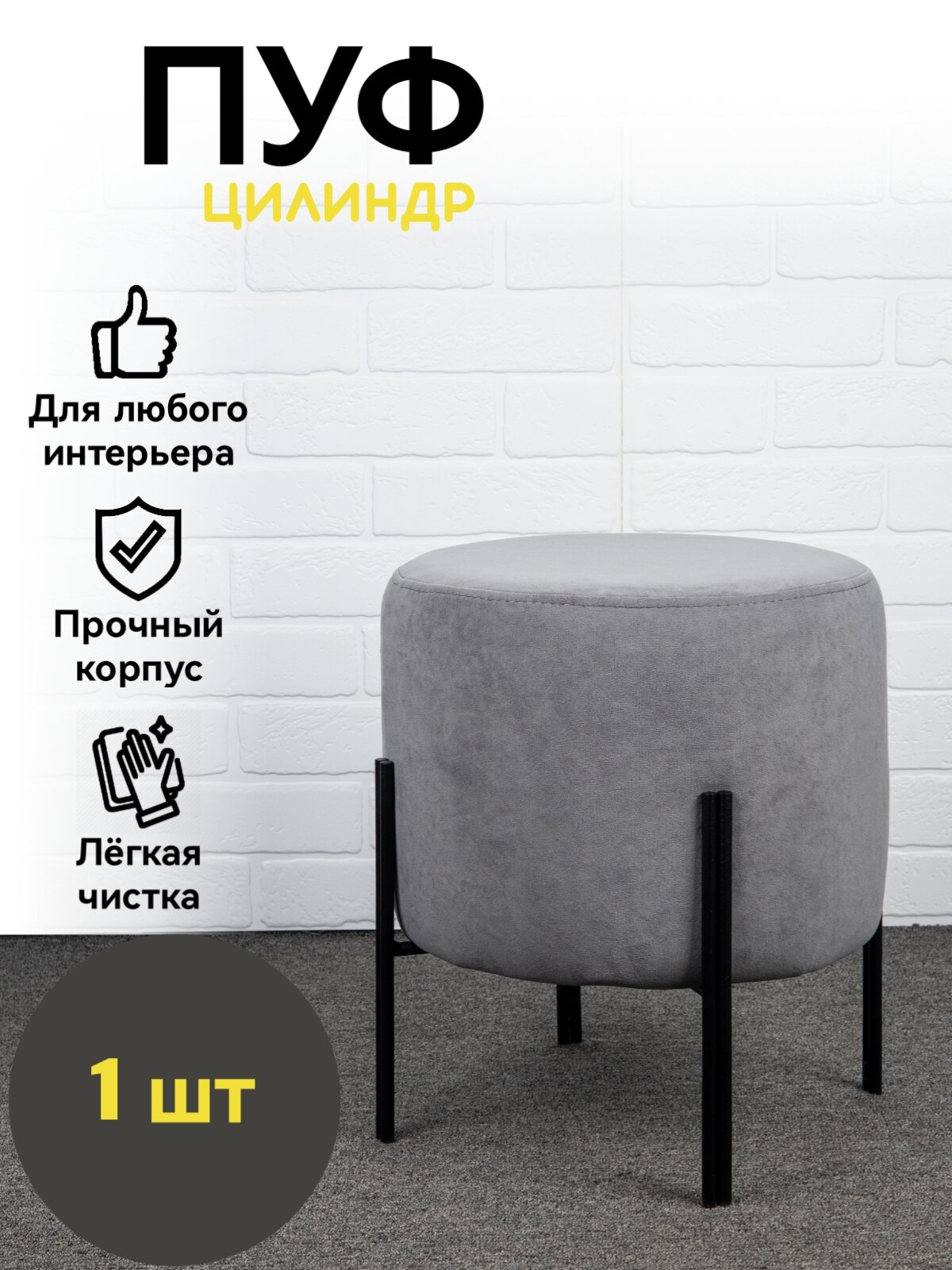 10 цен на Пуфик для прихожей 1 шт, Azzurro mebel, серый, черные ножки