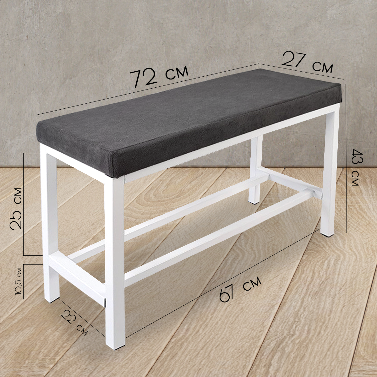 Банкетка в прихожую с сиденьем, белый каркас, серая информация: