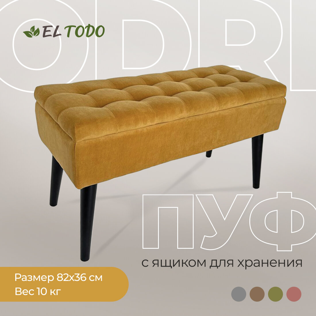 10 цен на Пуфик в прихожую банкетка с ящиком для хранения мягкий на ножках одри EL TODO желтый, горчичный
