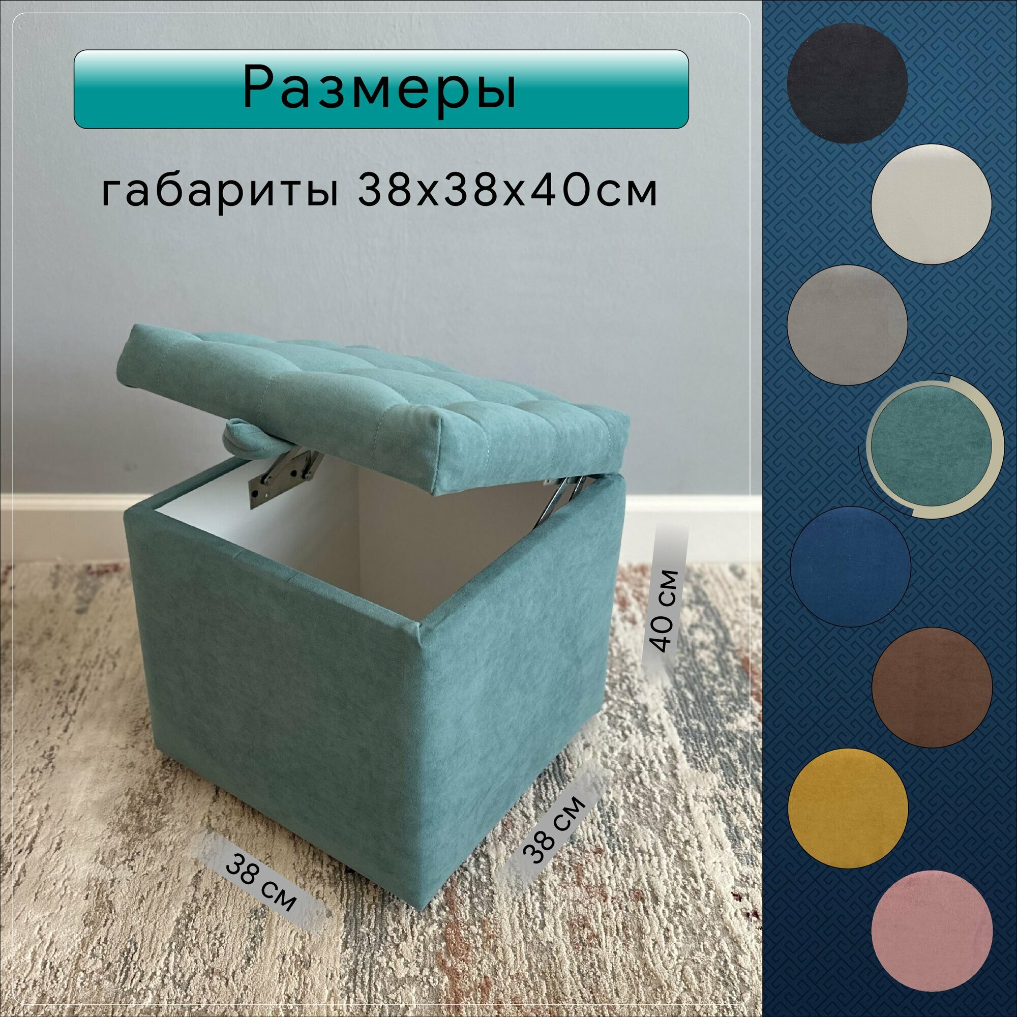 Пуфик в прихожую спальню с ящиком для хранения, 38х40х38, бирюзовый информация: