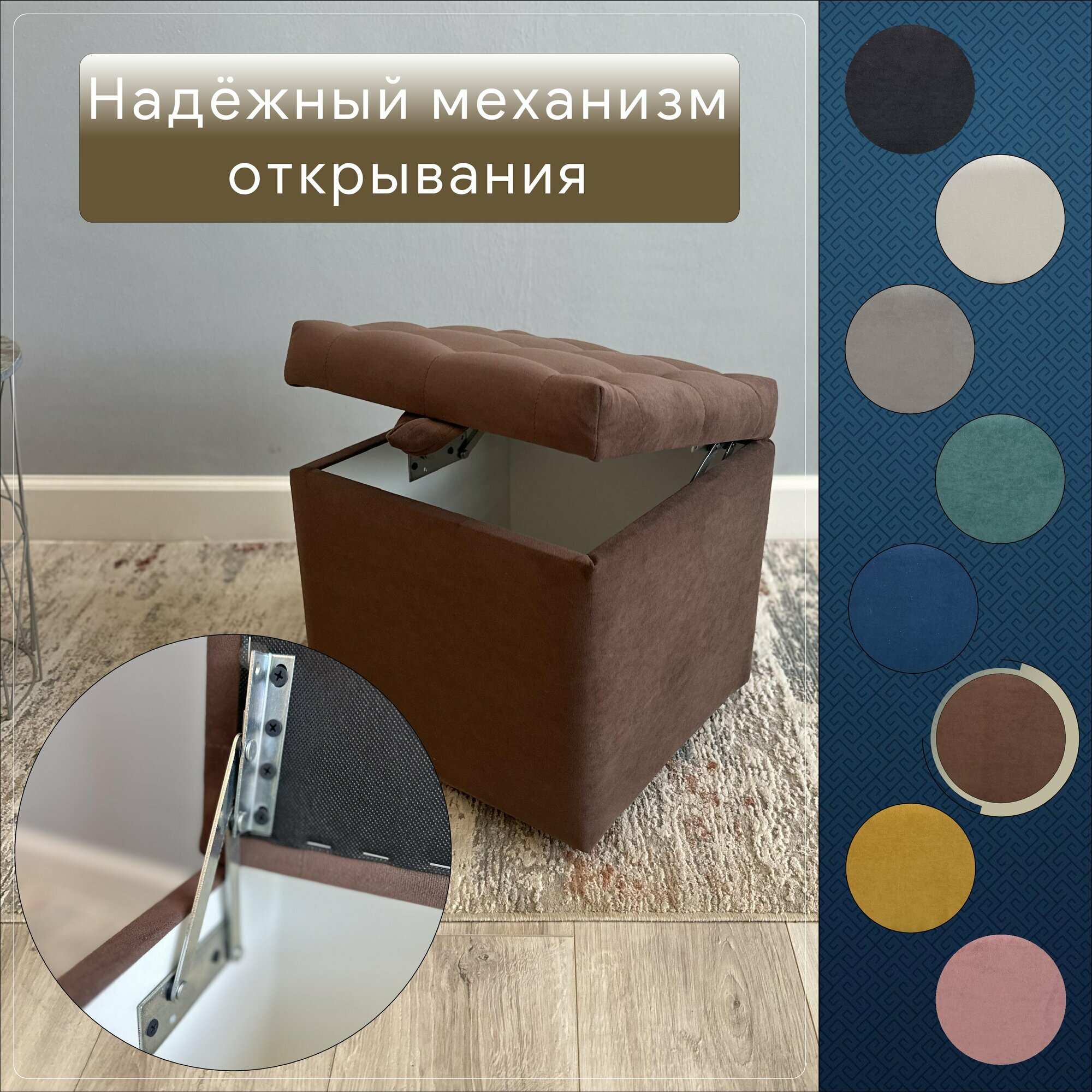 Отзывы на Пуфик в прихожую спальню с ящиком для хранения, 38х40х38, шоколадный