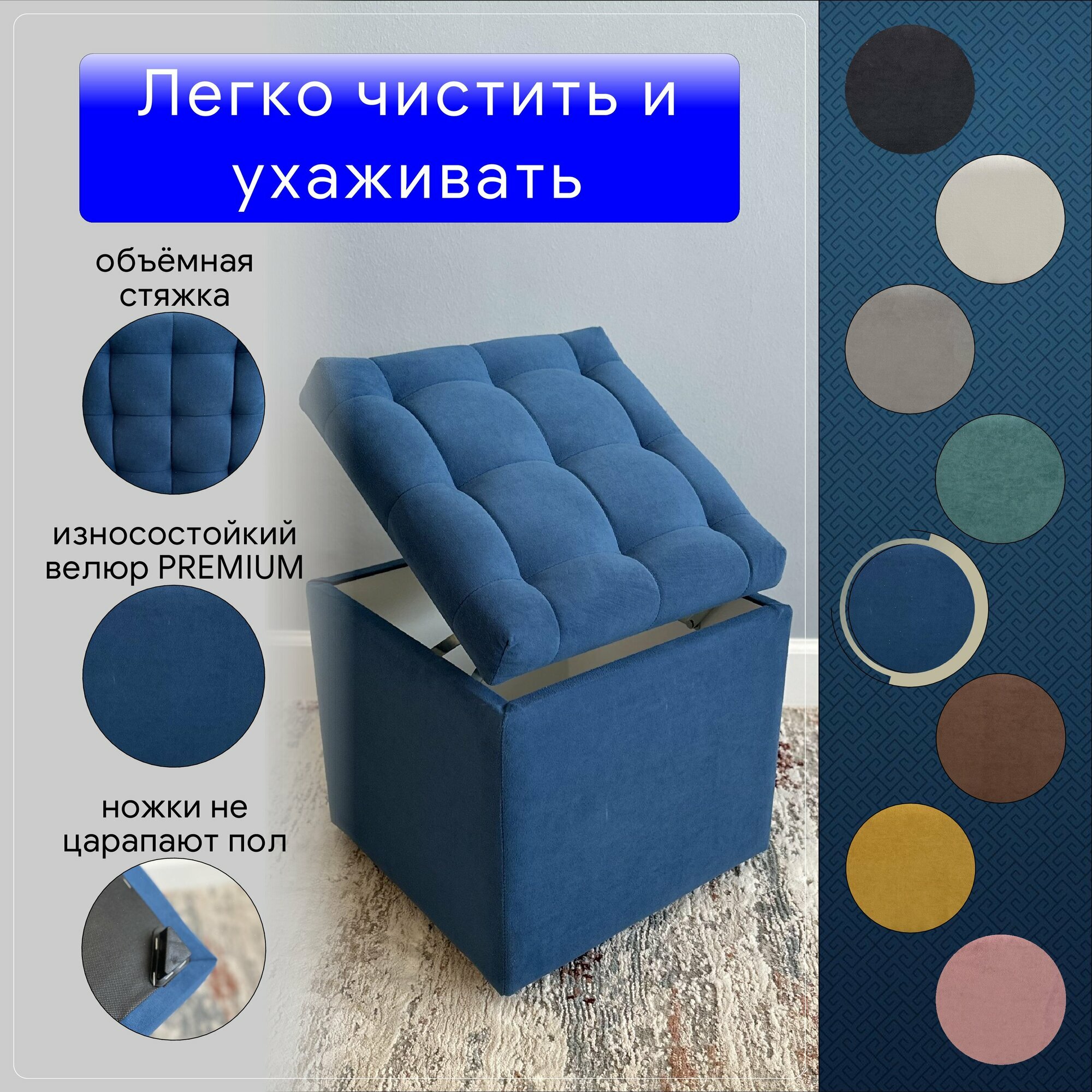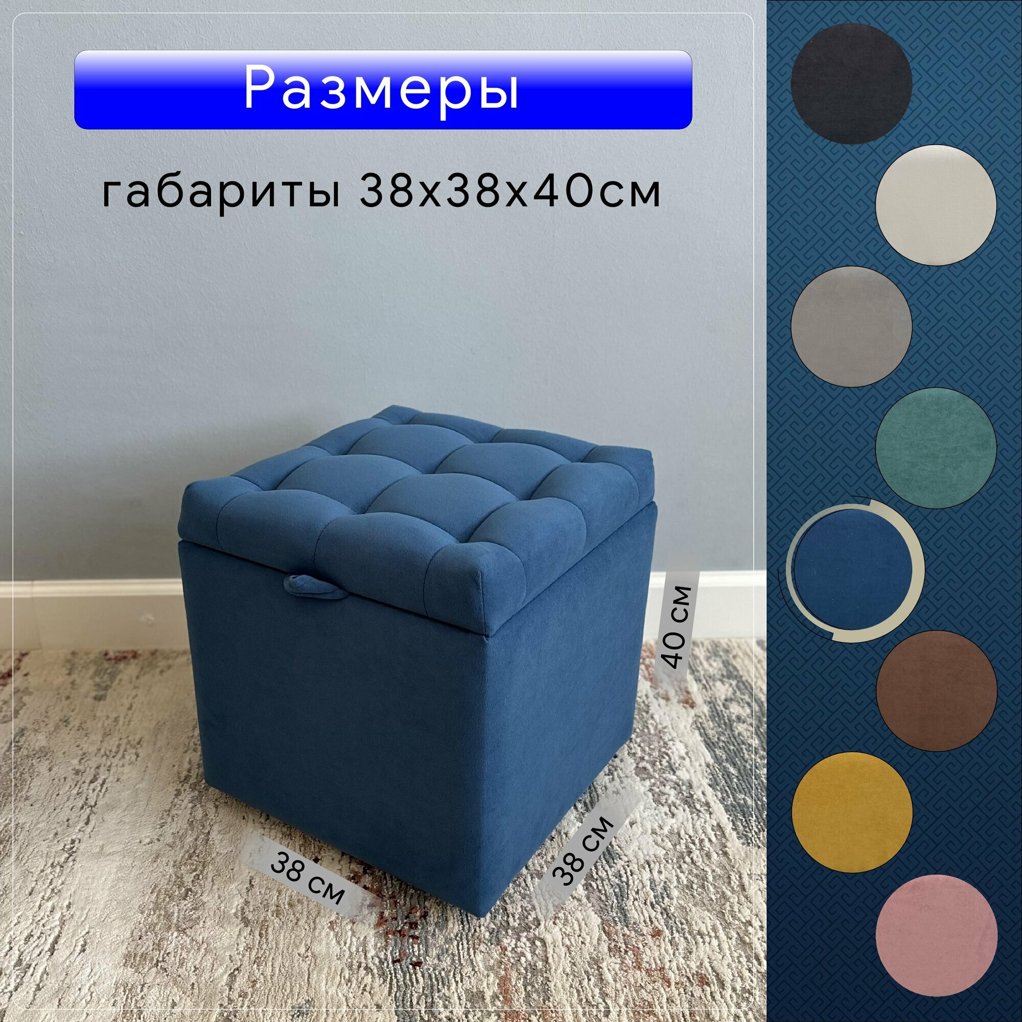 Пуфик в прихожую спальню с ящиком для хранения, 38х40х38, синий информация: