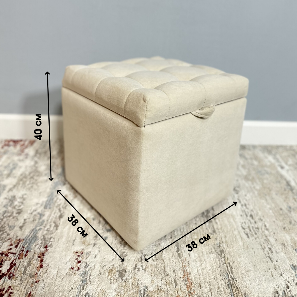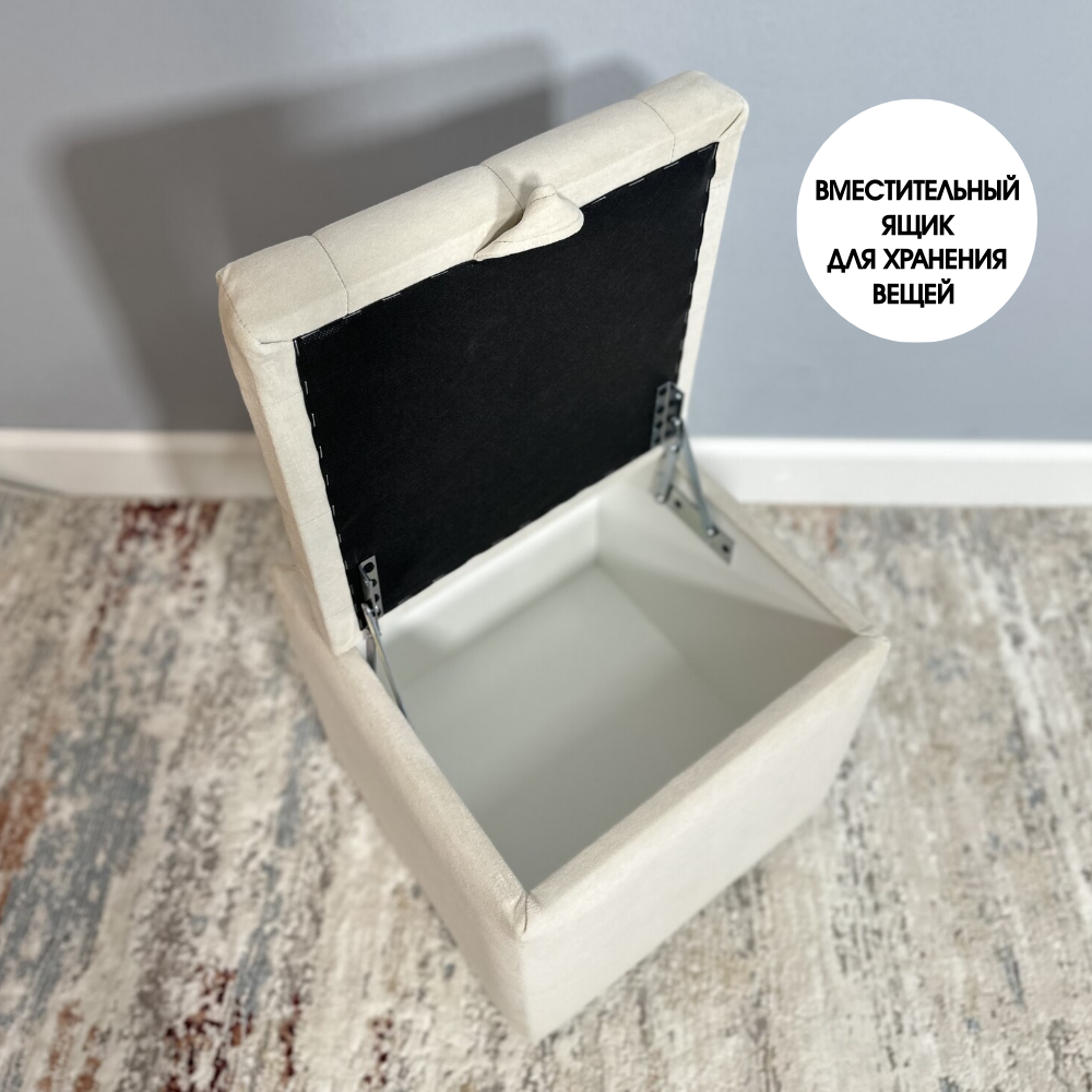 Пуфик в прихожую спальню с ящиком для хранения, 38х40х38, бежевый информация: