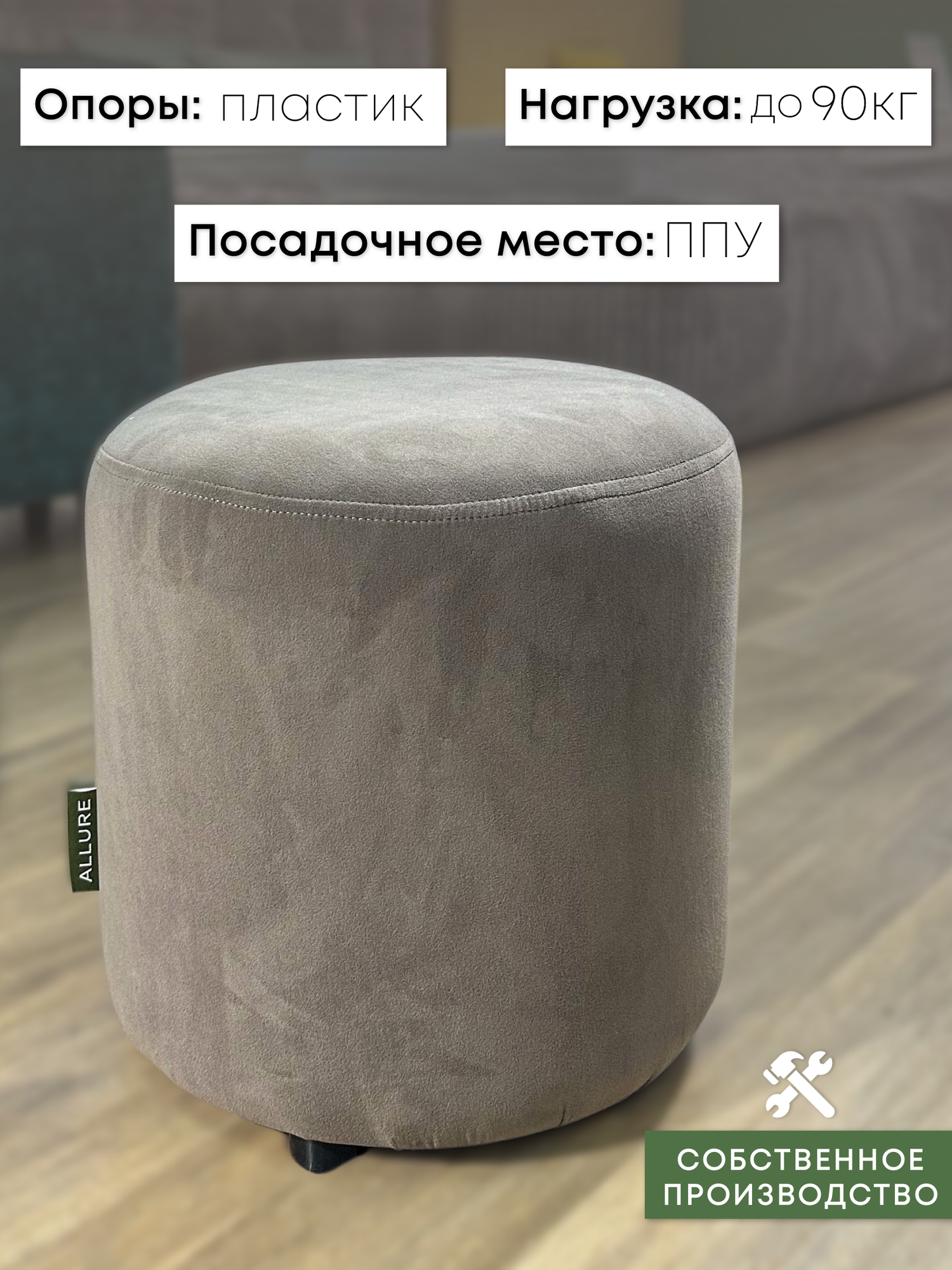 Отзывы на Пуф пуфик круглый для спальни и прихожей, ALLURE, 40x40x42 см, велюровый бежевый