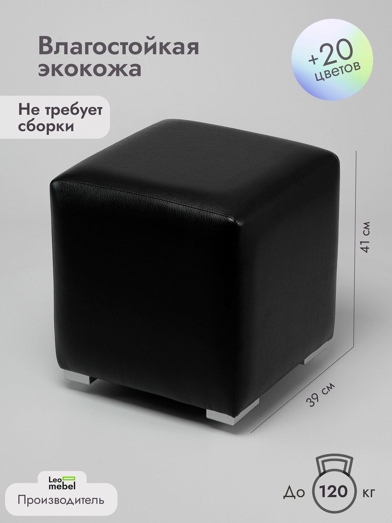 Пуфик для прихожей Леомебель из экокожи в примерочную 41х39х39 Черный информация: