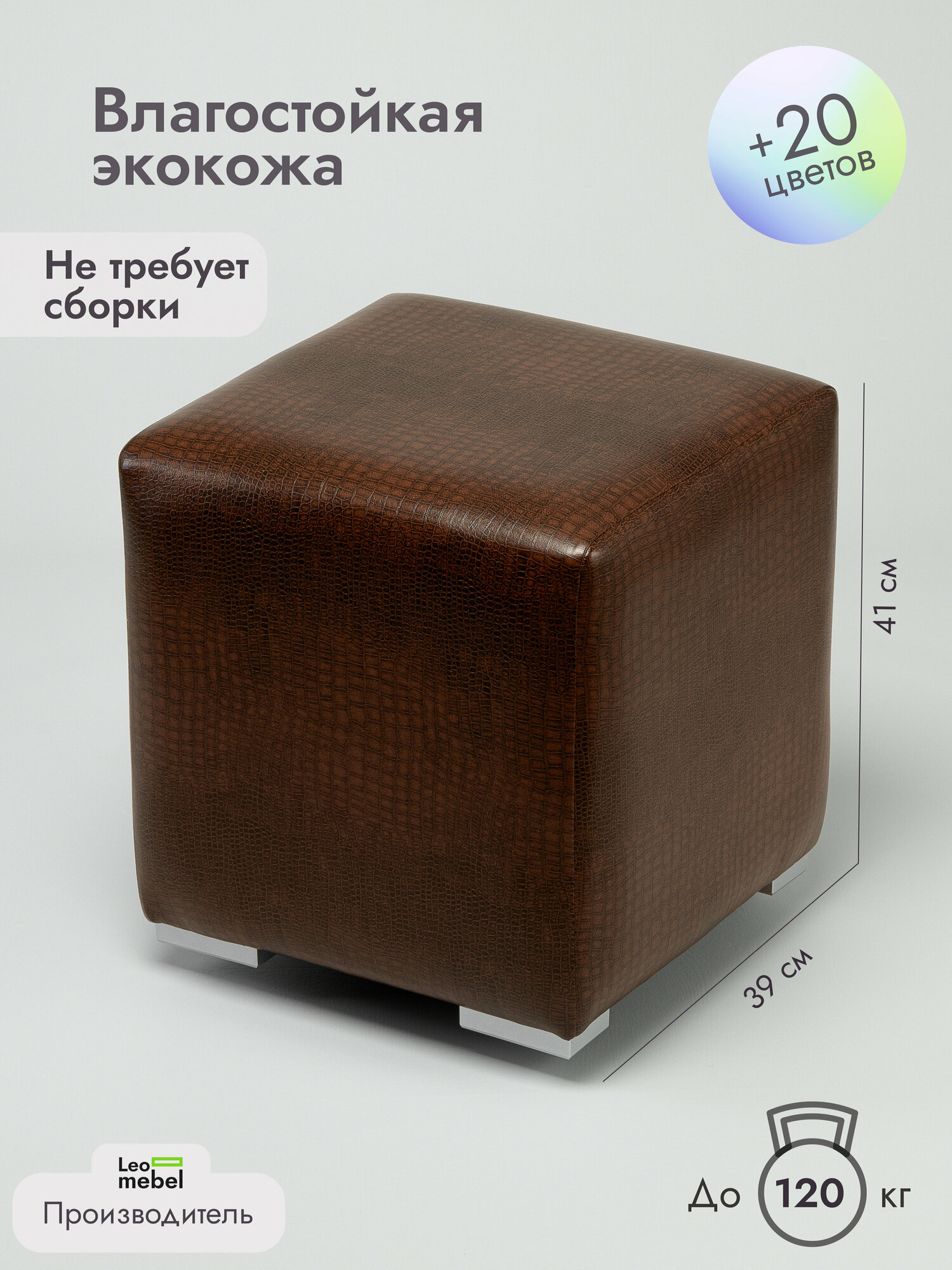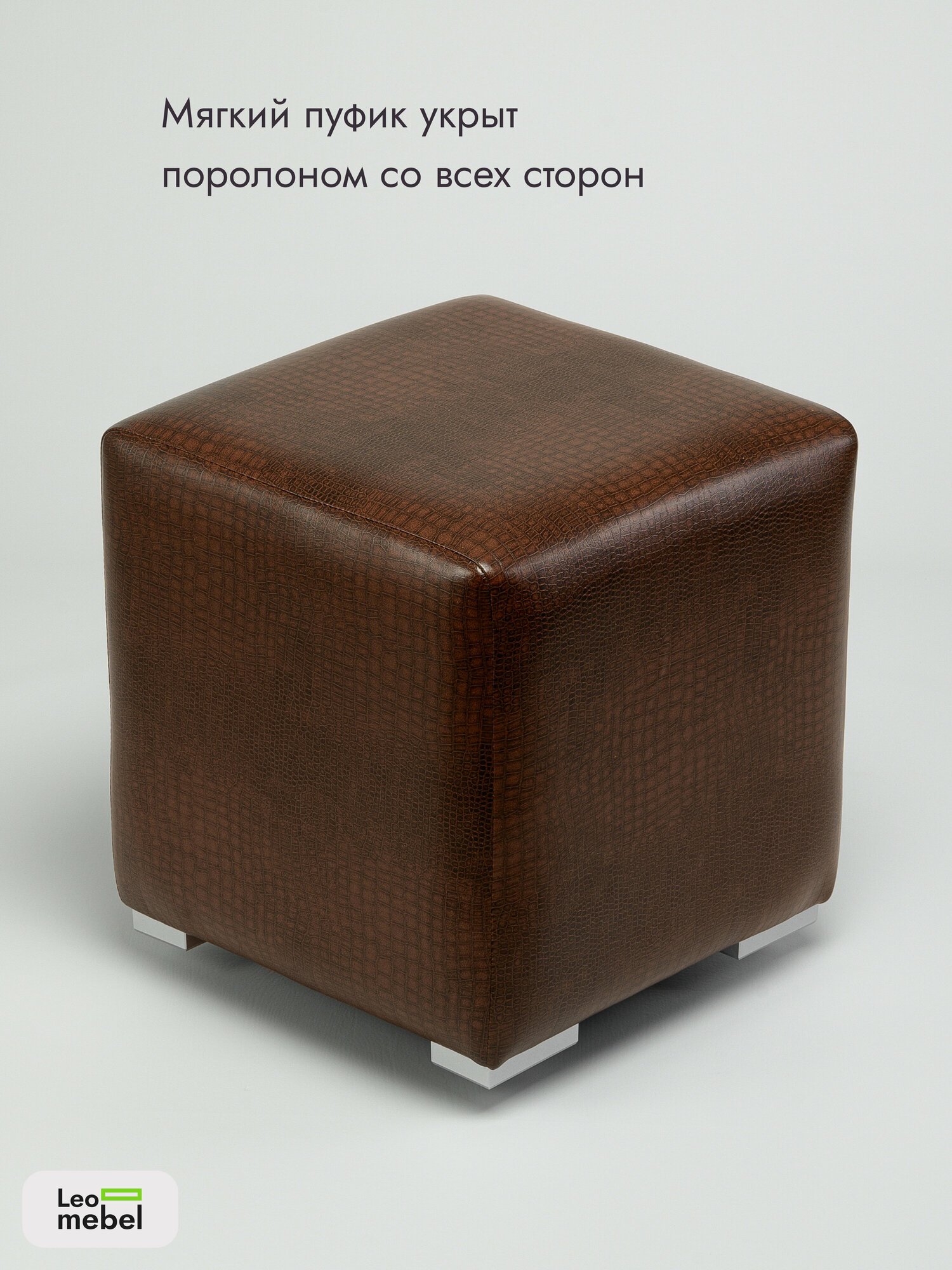 Пуфик для прихожей Леомебель из экокожи в примерочную 41х39х39 Коричневый крокодил информация: