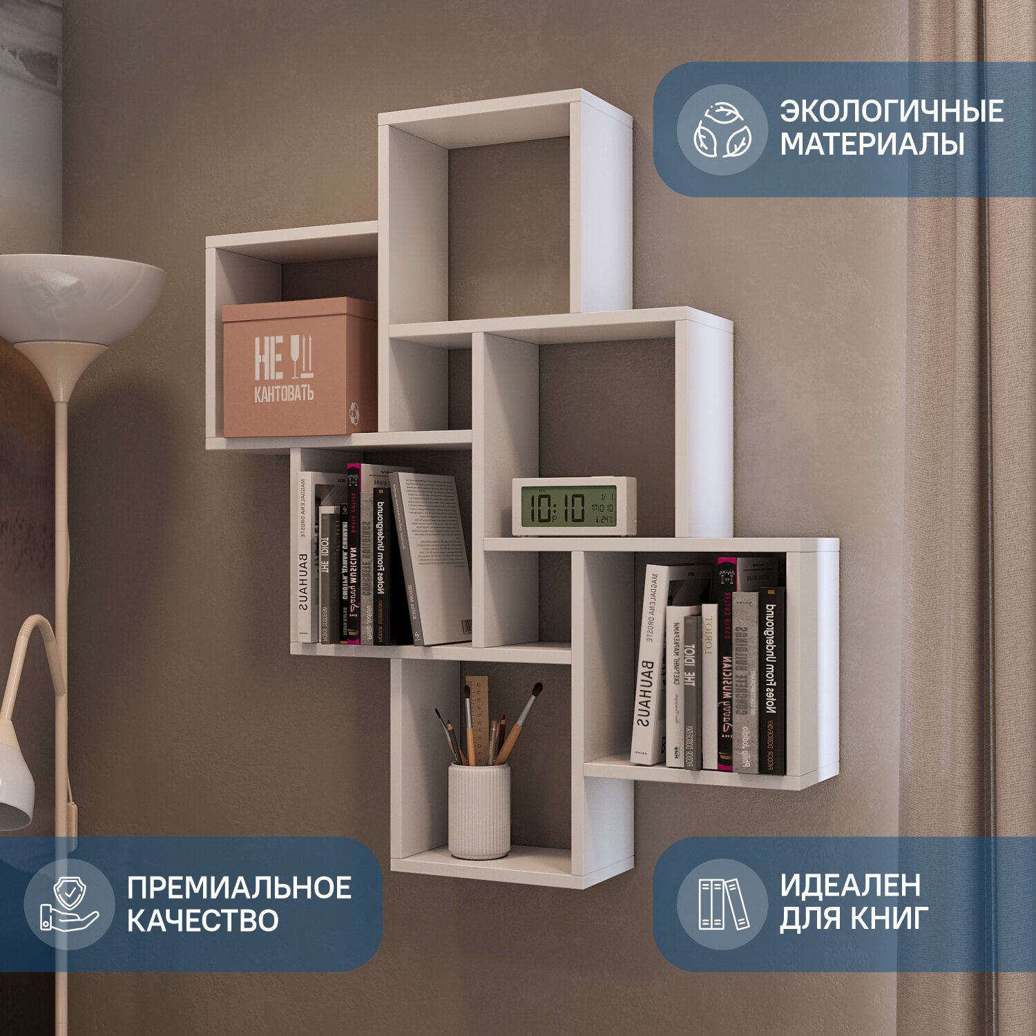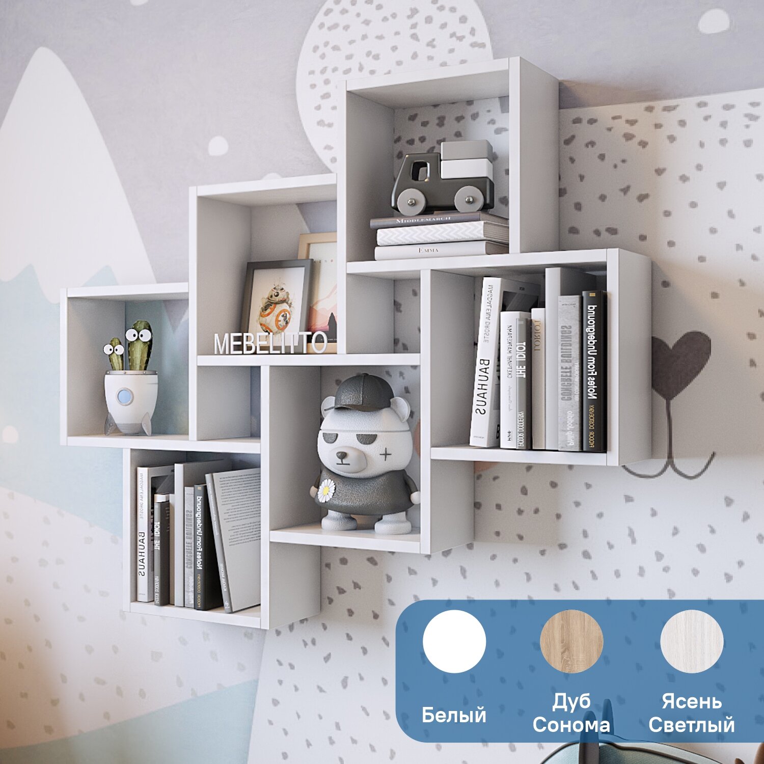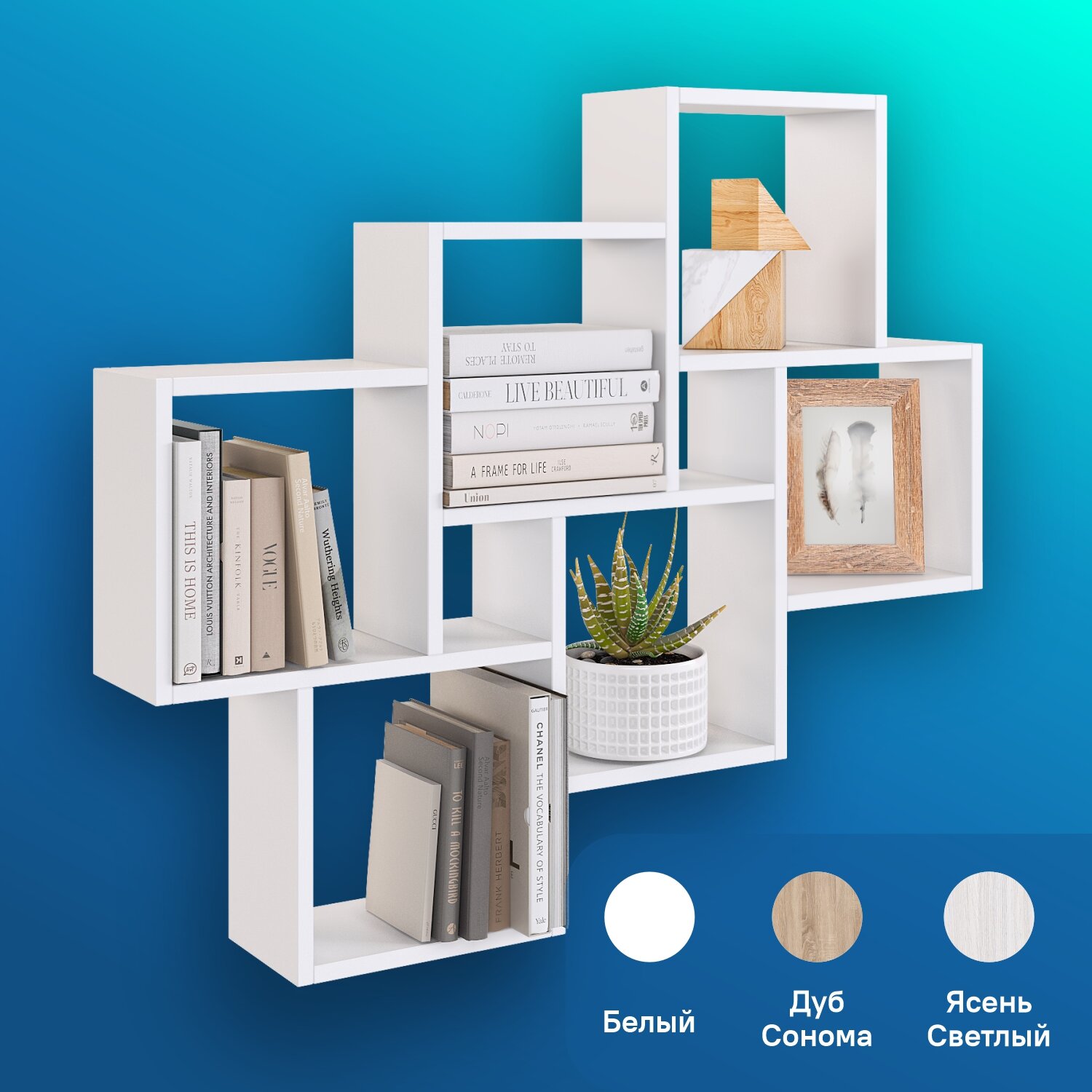 10 цен на Полка "Квадро" настенная белая деревянная для книг навесная