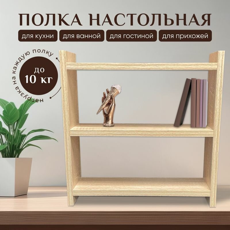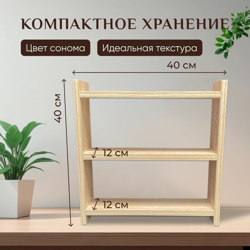 10 цен на Полка деревянная настольная для книг, на кухню для специй, для учебников, сонома, 40 х 40 х 12 см