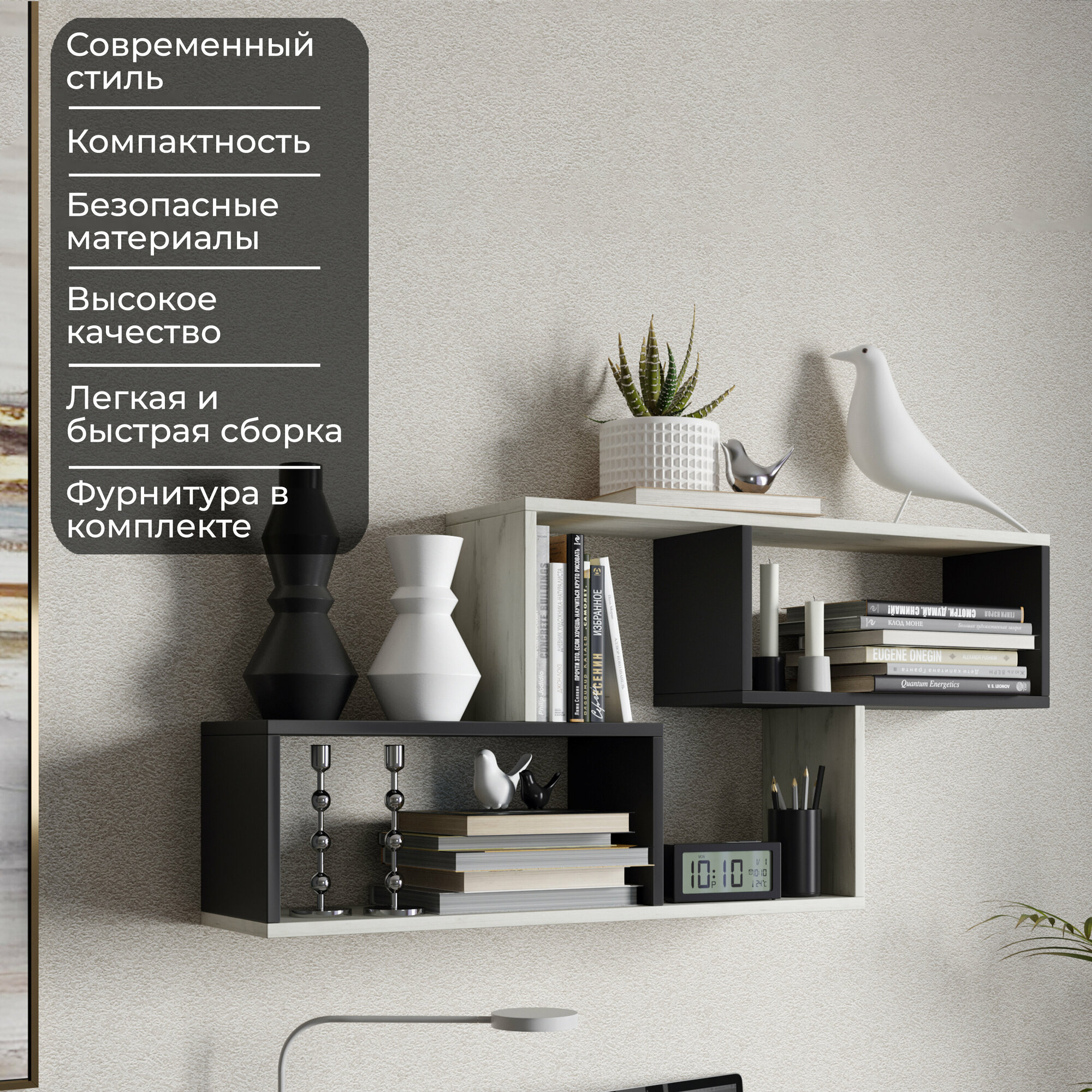 | Назначение | для гостиной/спальни / для детской / для икон / для книг / для кухни / для прихожей / для роутера / для сауны/бани / для специй / для фоторамок и сувенирной продукции / универсальное |