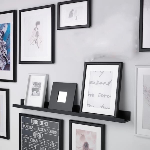 Полка Настенная Прямая Навесная, Для картин, для фотографий, 90х12х7 см, черная, 1 шт. 1 650 ₽