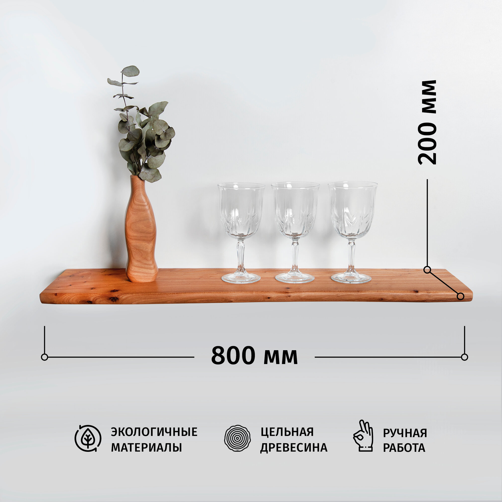 Полка настенная ChoodWood 80х20см из массива дерева на скрытом крепеже информация: