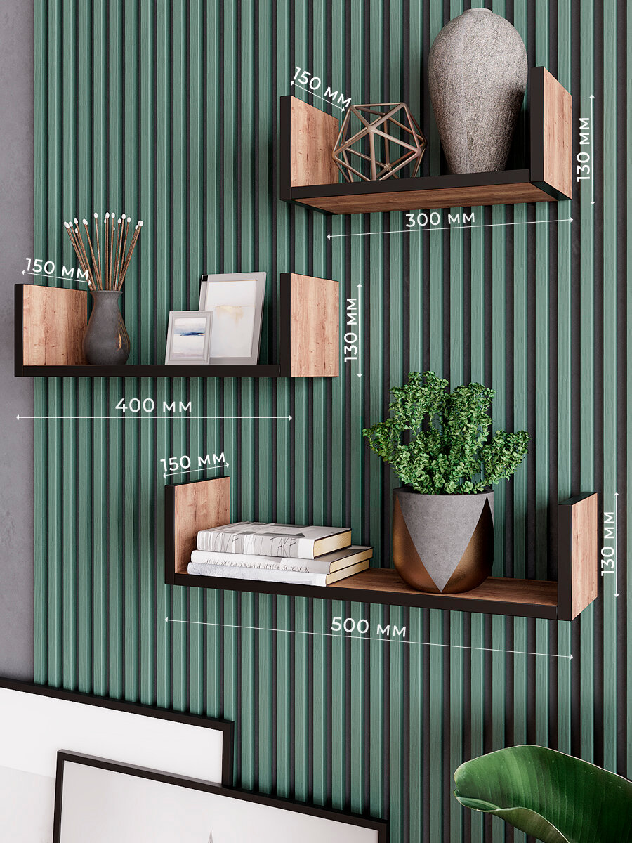 Полка настенная венге 3 шт полки для кухни для игрушек 30, 40, 50 см ширина 1 090 ₽