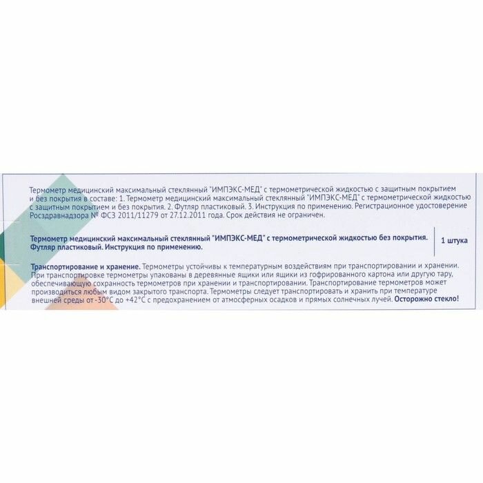 Термометр медицинский стеклянный Импэкс-Мед без ртути, пластиковый футляр информация: