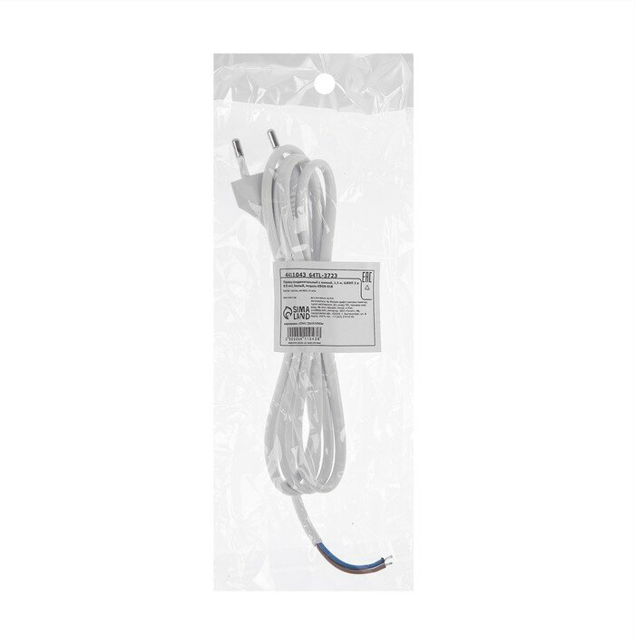 Шнур сетевой с вилкой, 1,5 м, ШВВП 2 х 0.5 мм2, белый информация: