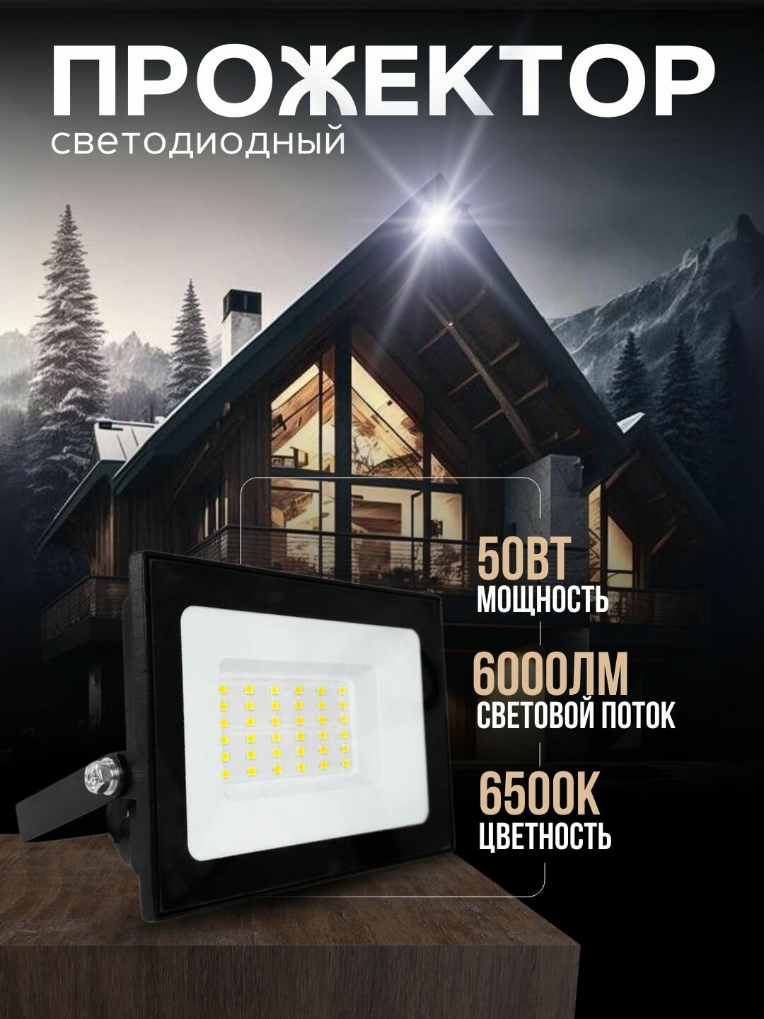 Отзывы на Прожектор LED 50W VLF8-50-6500-B 6500К 6000Лм 220V IP65 черный VKL electric