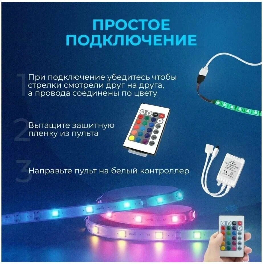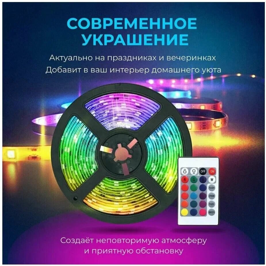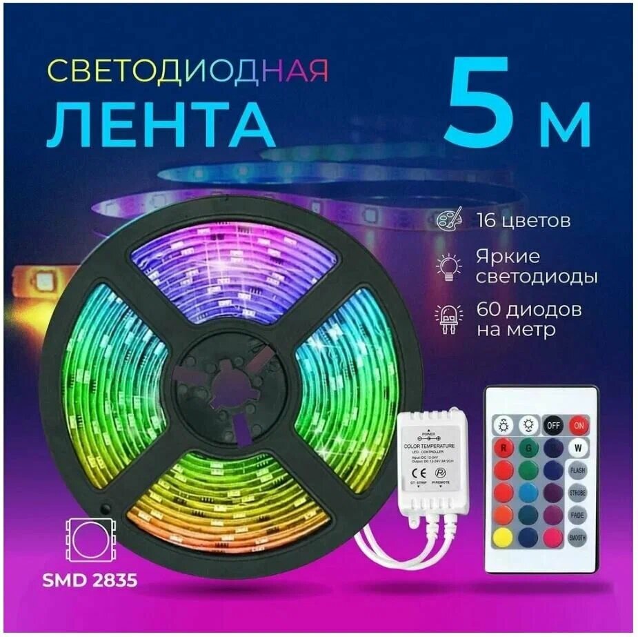 Светодиодная многоцветная RGB лента, 5 м. с блоком питания и пультом информация: