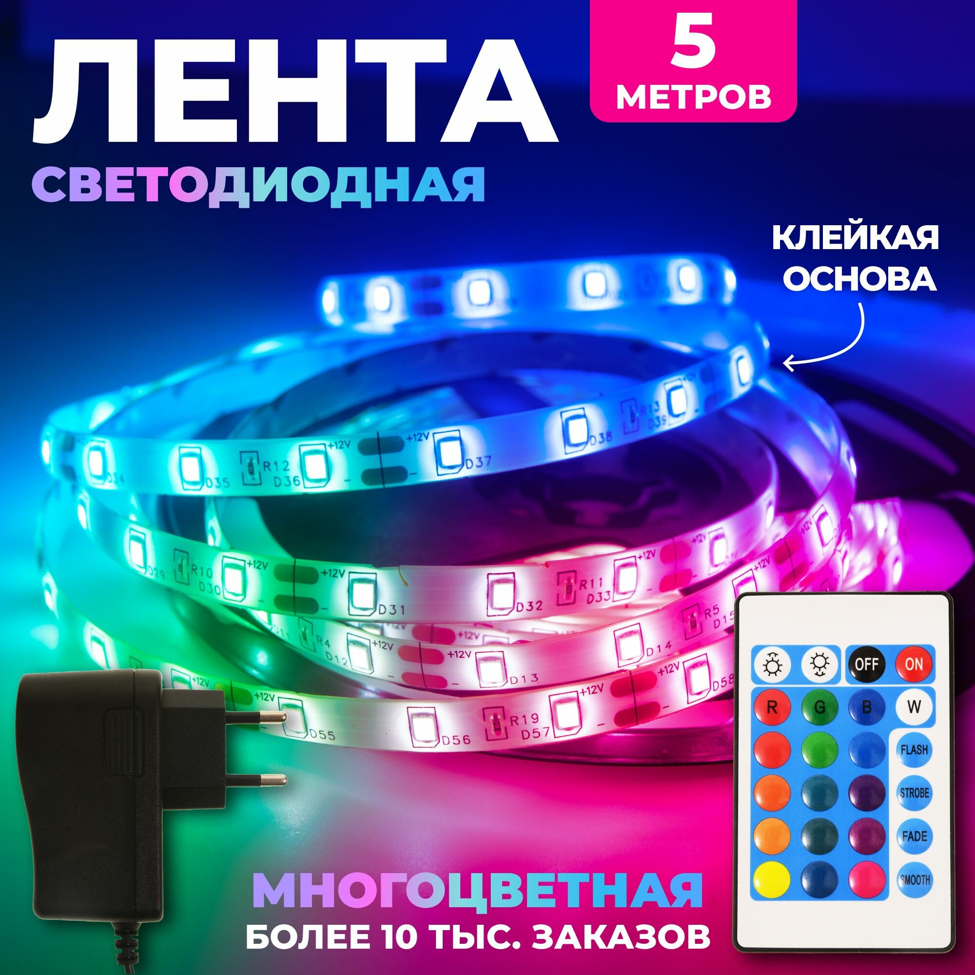| Дополнительная информация | Светодиодная лента 5 метров, пульт ДУ, контроллер, СЗУ, коробка |