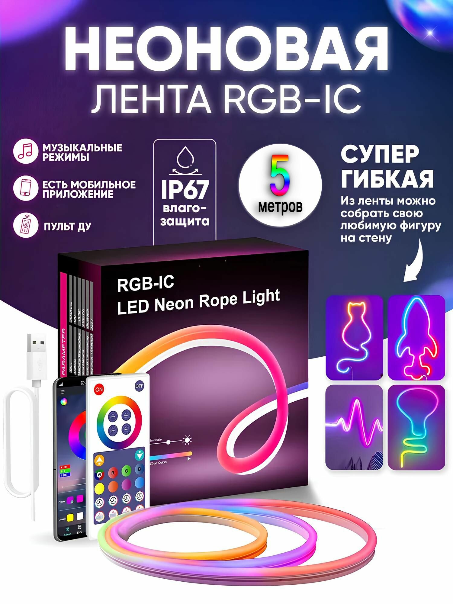| Комплектация | Неоновая лента Блок питания Блок Управления |