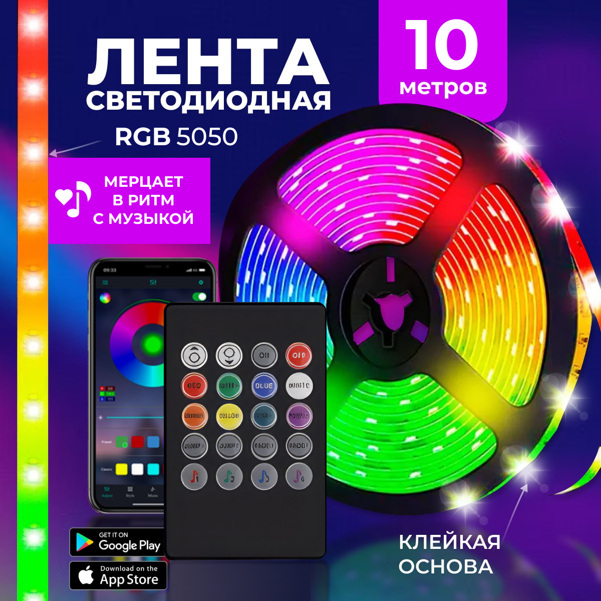 10 цен на Светодиодная лента RGB Bluetooth с пультом управления многоцветная, подсветка, 10 метров/ диоды 5050