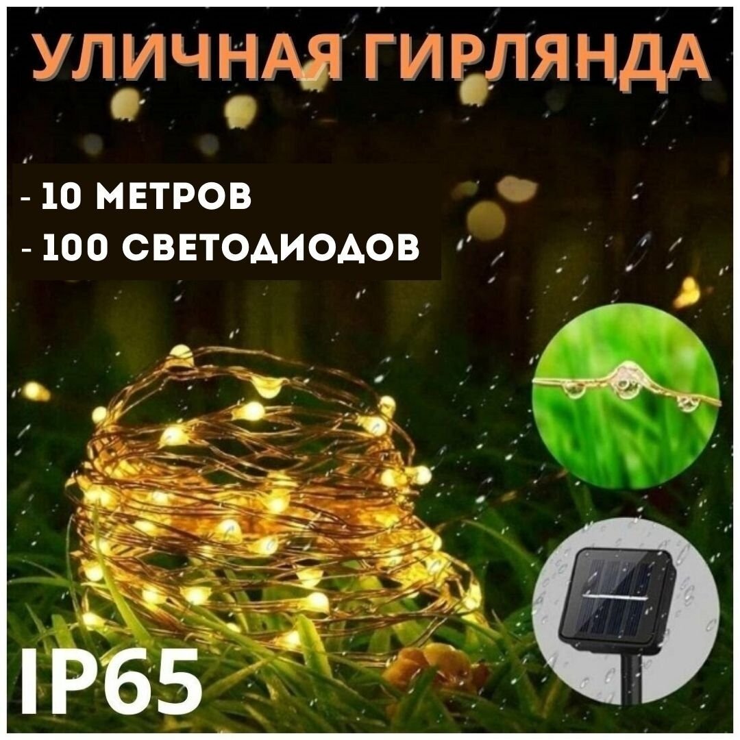 Светодиодная гирлянда на солнечной батарее 100 LED, 10 метров MFSLC01 информация: