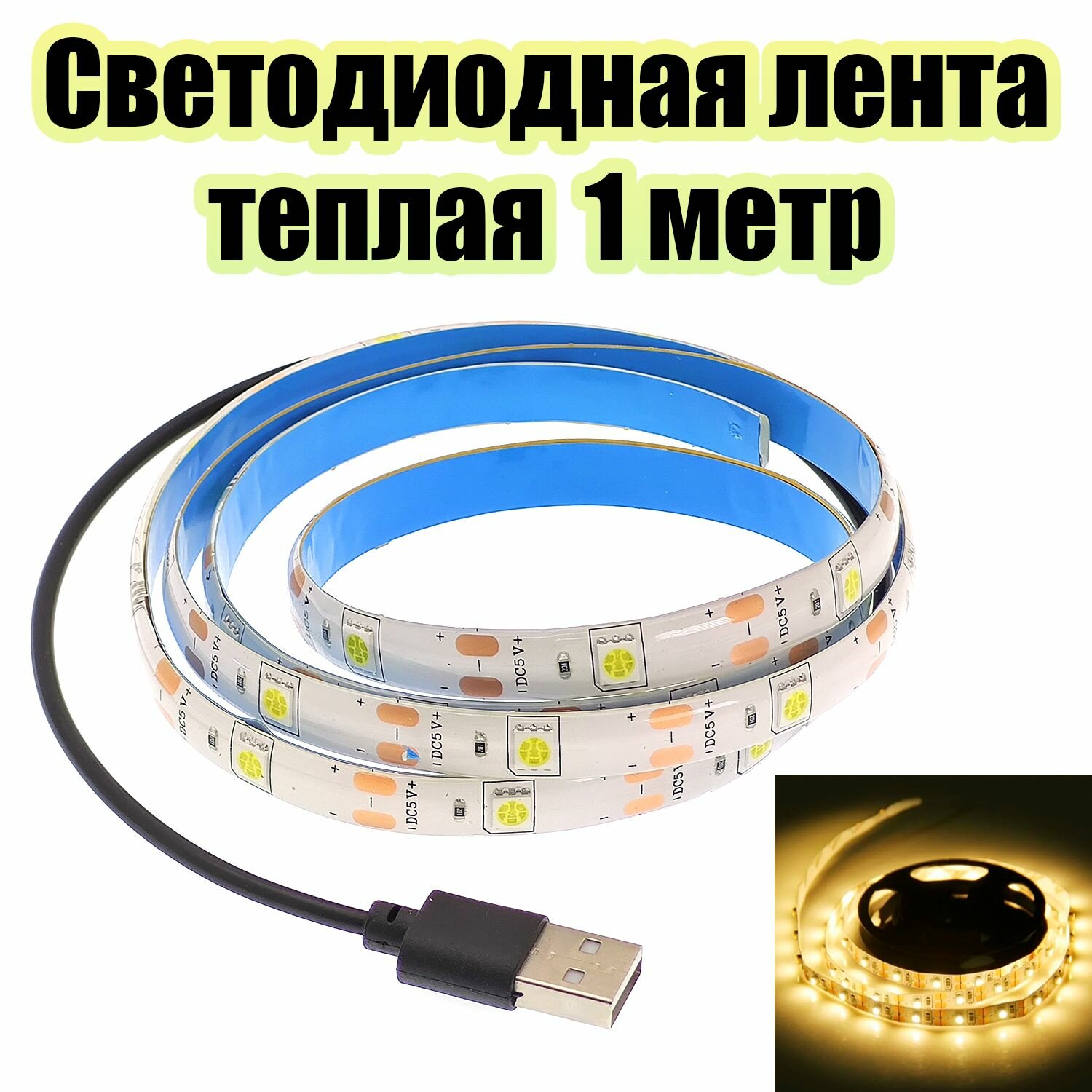 Отзывы на Светодиодная лента USB теплая белая длиной 1 метр Огонек OG-LDL09