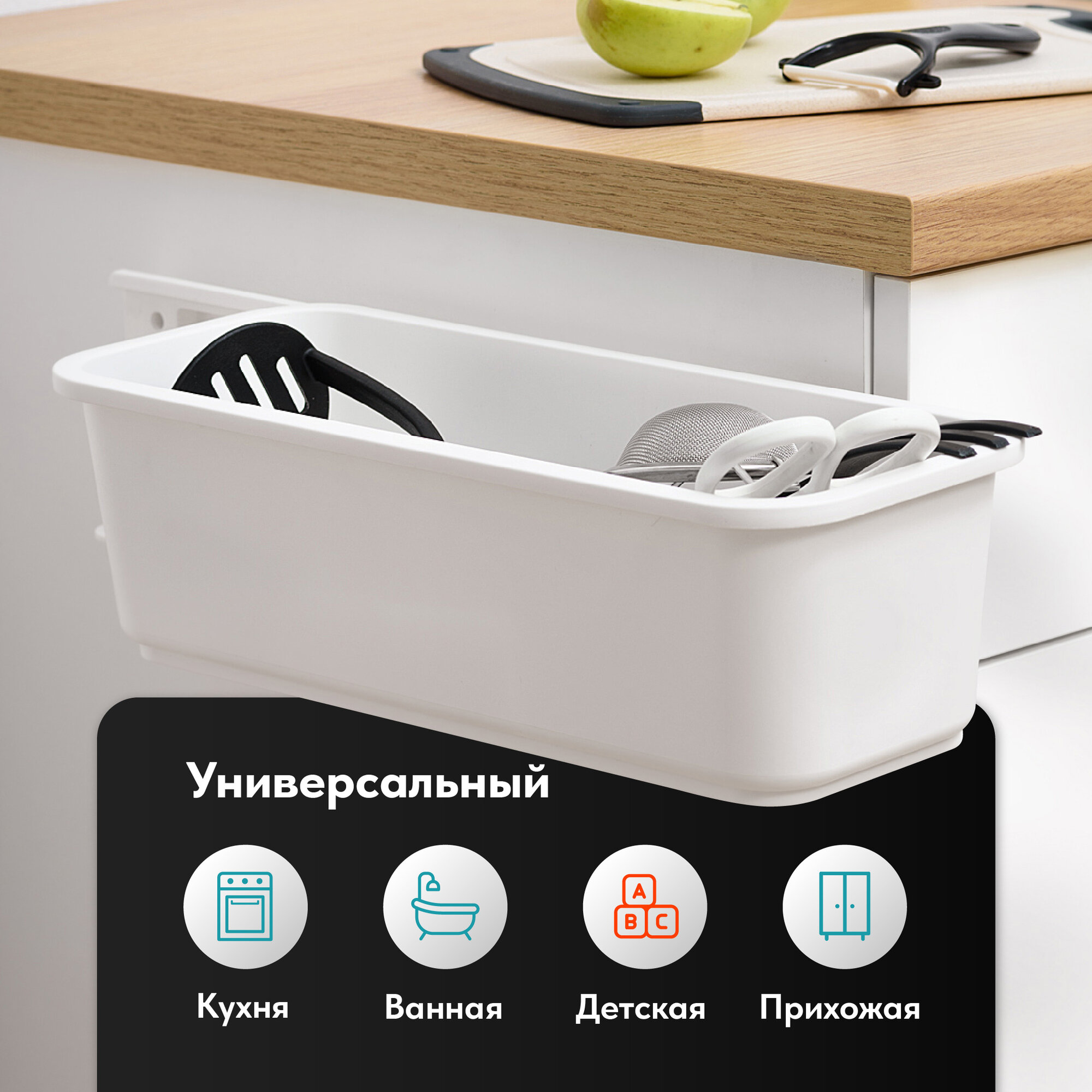 Органайзер для кухни выдвижной Birdhouse, пластиковый, белый информация: