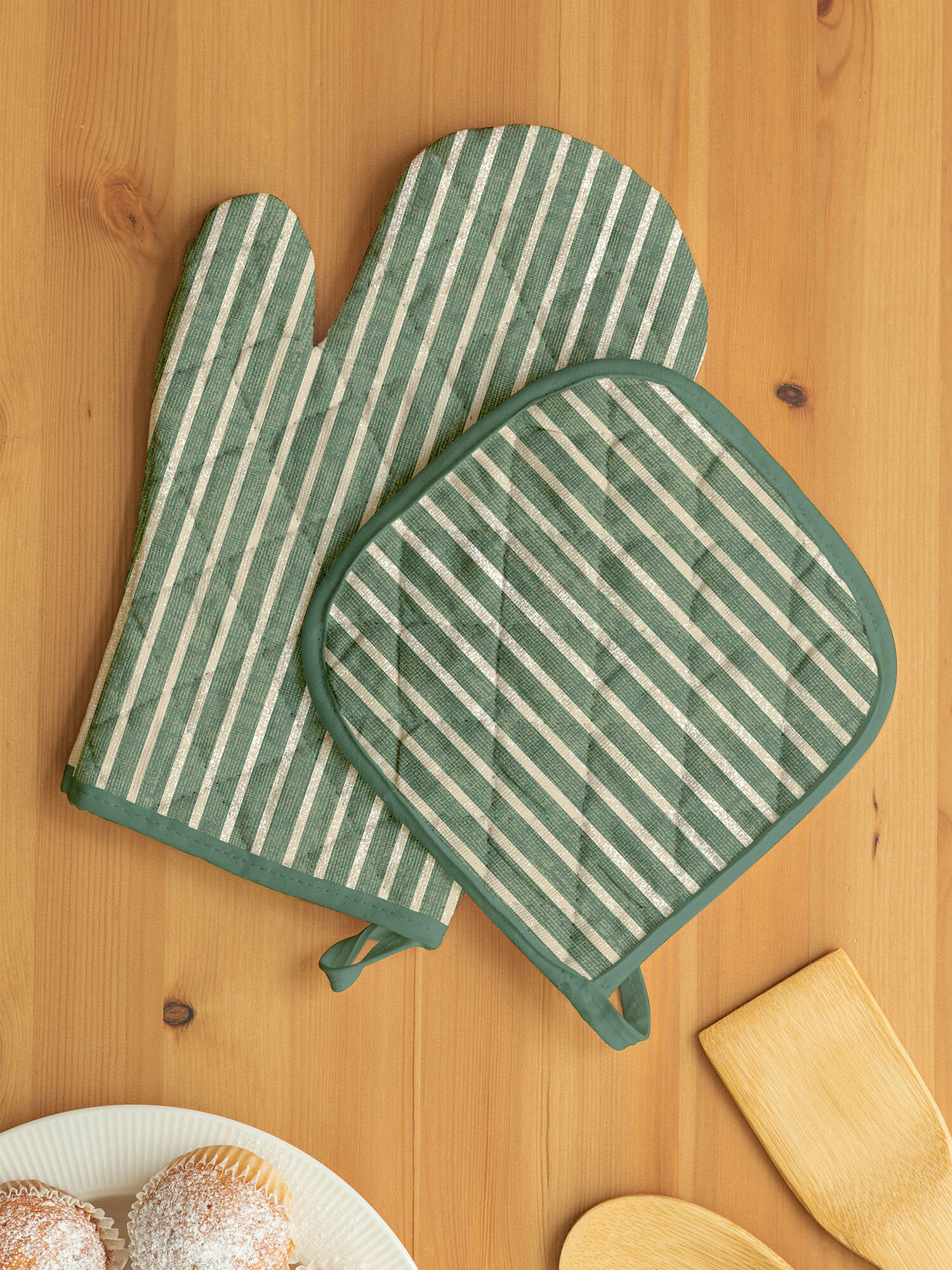 Комплект кухонный рогожка (прихватка 18х18, прихватка-рукавица 18х28) "Унисон" рис 30004-21 Basic зеленый 260 ₽