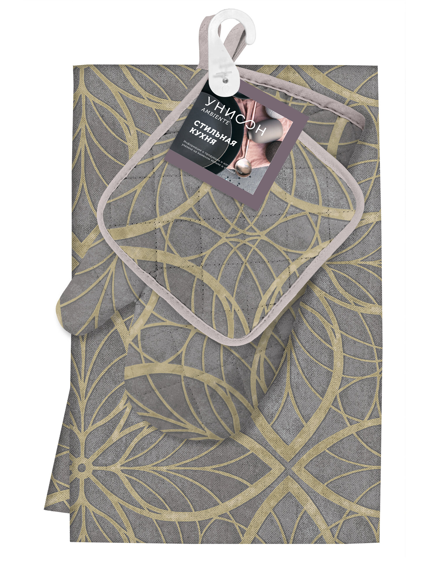 Комплект кухонный рогожка (прихватка 18х18, прихватка-рукавица 18х28, фартук 60х70) "Унисон" рис 33162-3 Nord 358 ₽