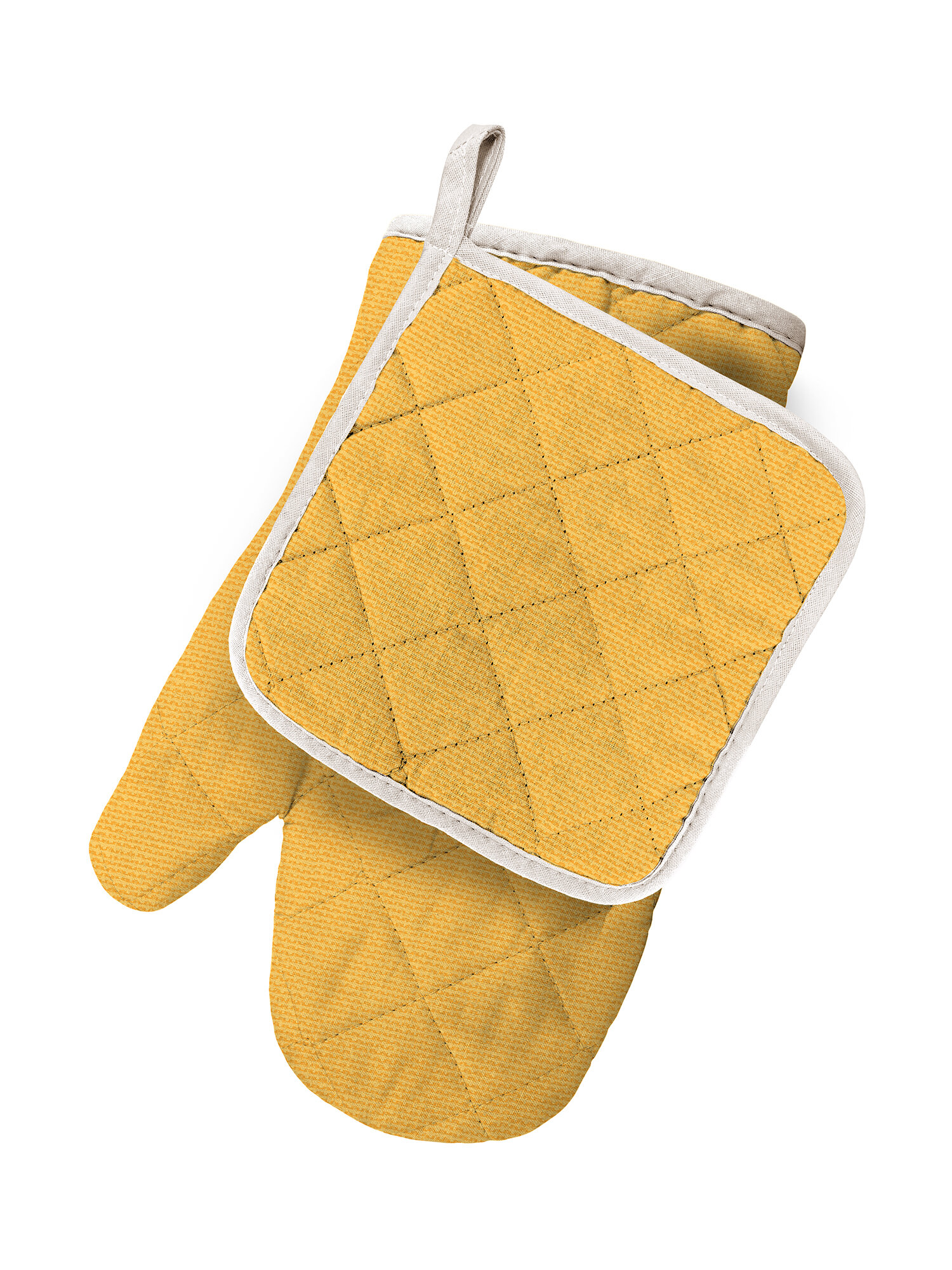 Отзывы на Комплект кухонный рогожка (прихватка 18х18, прихватка-рукавица 18х28) "Унисон" рис 30004-16 Basic желтый