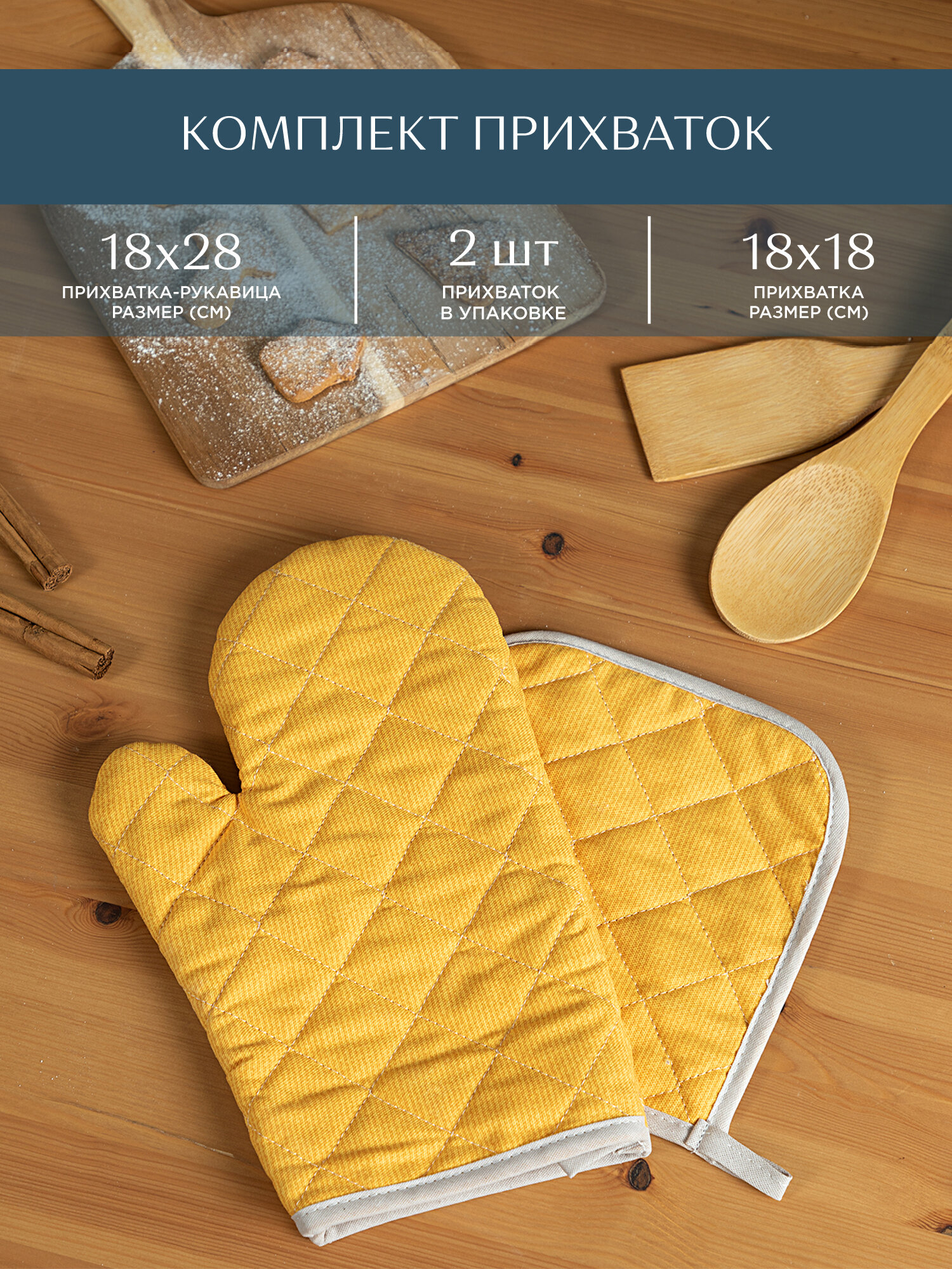 10 цен на Комплект кухонный рогожка (прихватка 18х18, прихватка-рукавица 18х28) "Унисон" рис 30004-16 Basic желтый