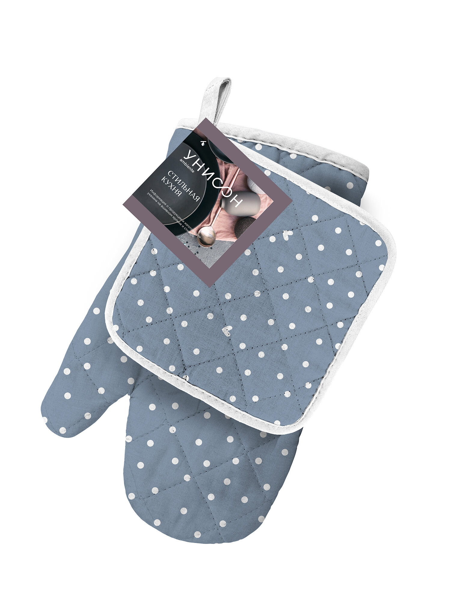 Комплект кухонный рогожка (прихватка 18х18, прихватка-рукавица 18х28) "Унисон" рис 30004-12 Basic светло-серый 232 ₽