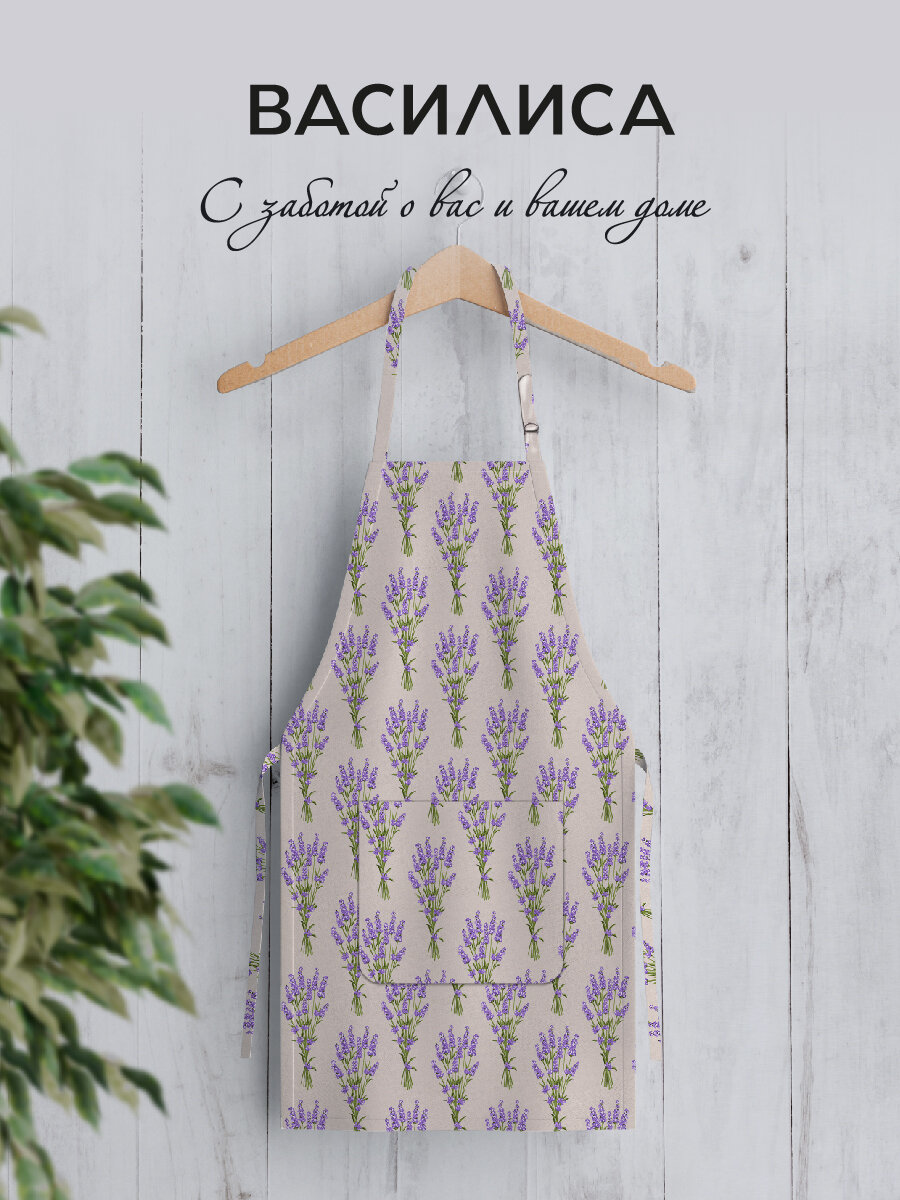 Фартук кухонный Василиса 60х80 см, с карманом, Рогожка, Букет лаванды 420 ₽