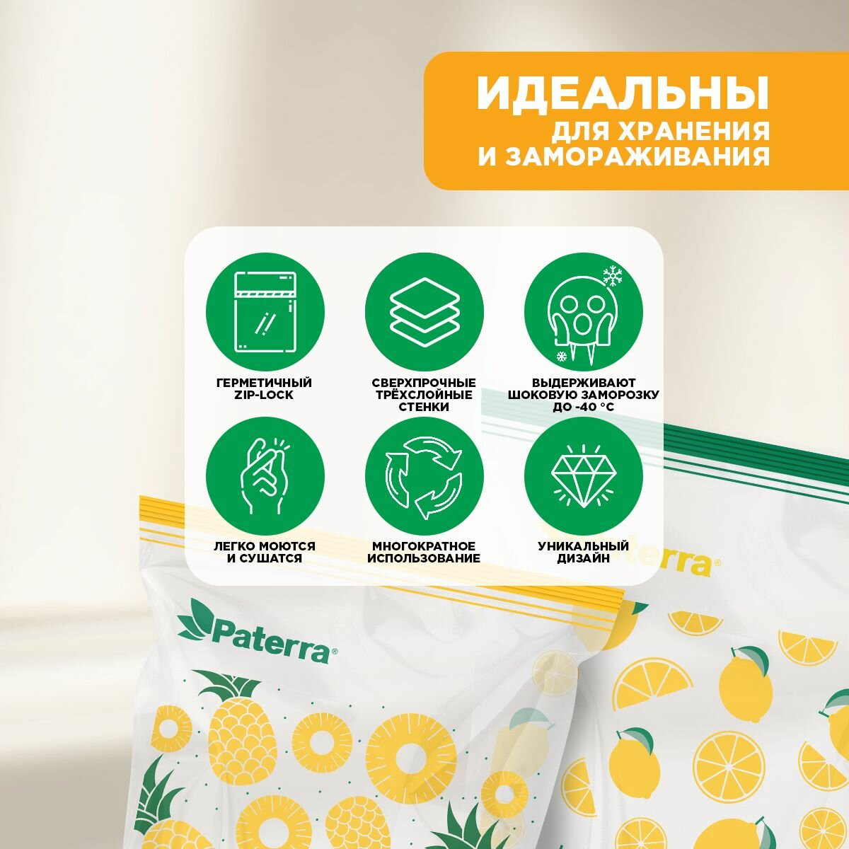 Пакеты универсальные, с двойным замком, 50 шт. в уп, 20.5*20.5см, 24*26.5см, "Лимон, ананас", PATERRА 650 ₽