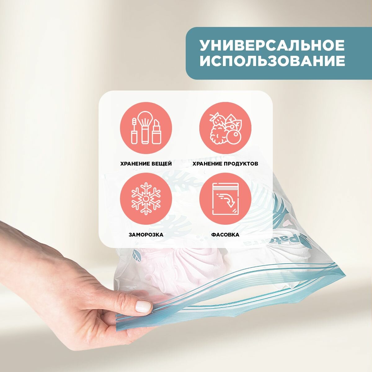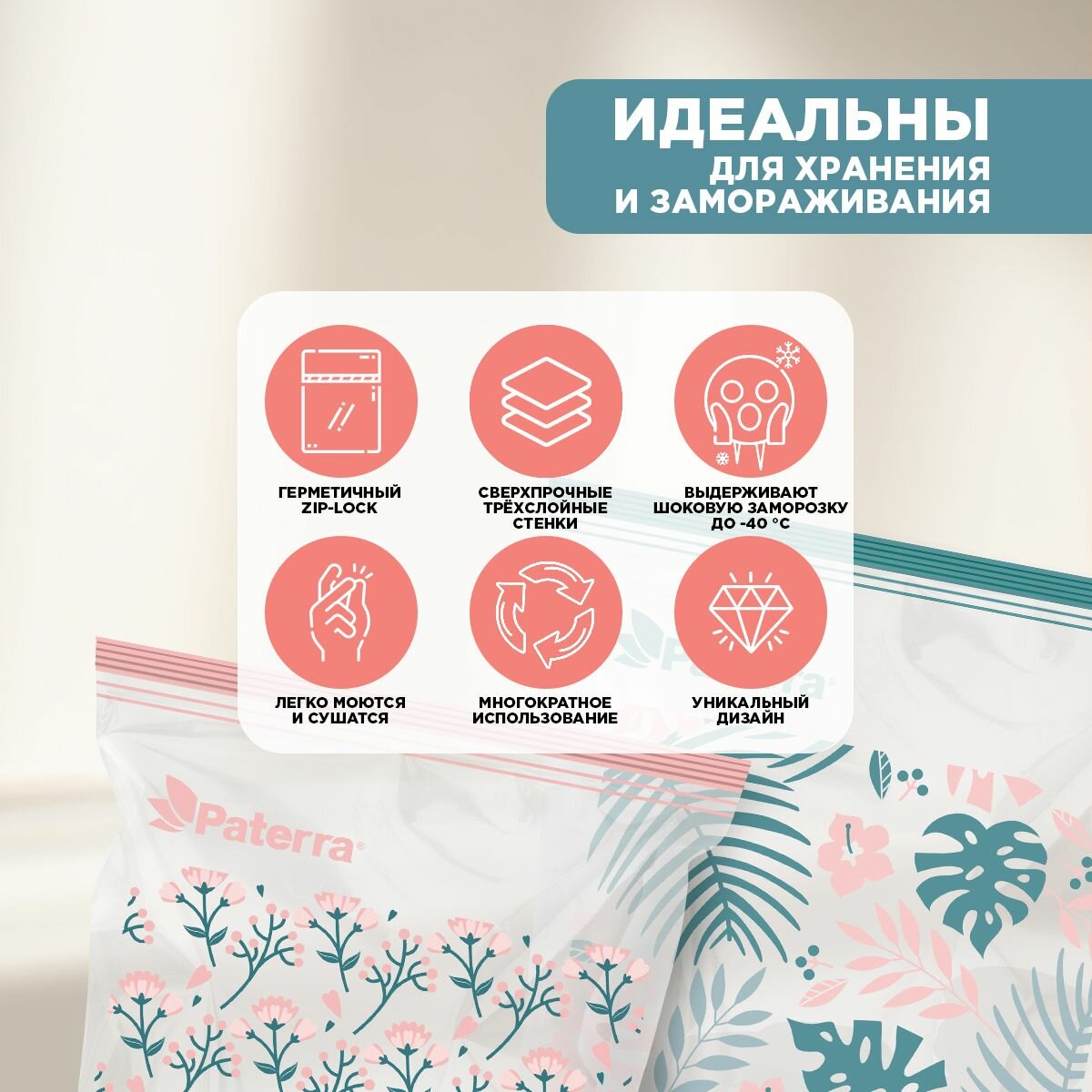 Отзывы на Фасовочные пакеты для хранения и замораживания продуктов c двойным ZIP-Lock "Монстера", PATERRA, 20,5х20,5 см-25 штук, 24х26,5 см-25 штук, всего-50 шт