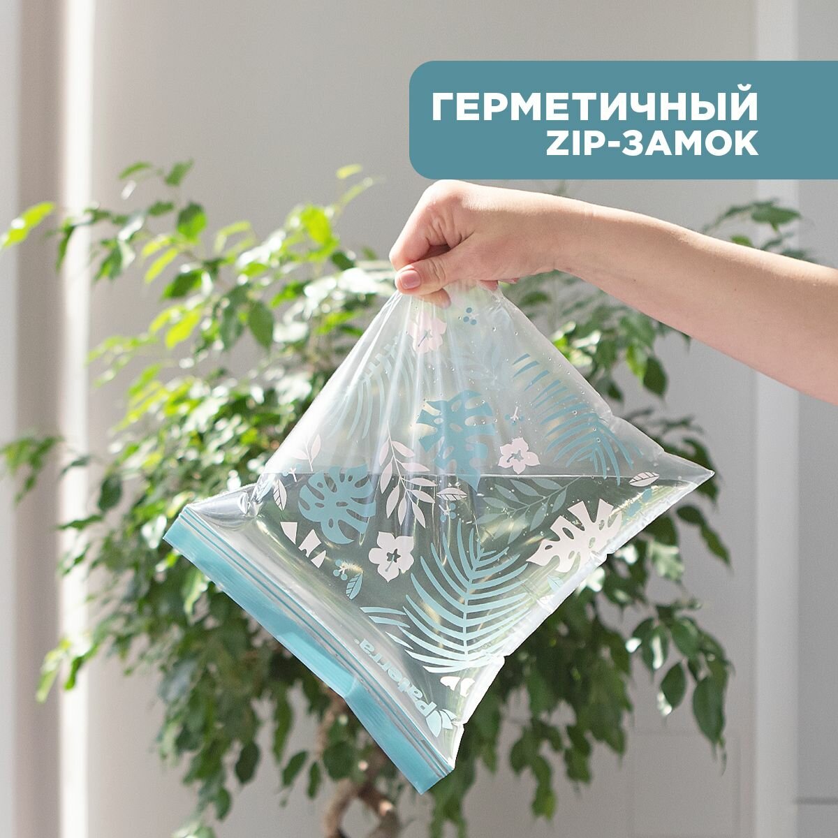 Фасовочные пакеты для хранения и замораживания продуктов c двойным ZIP-Lock "Монстера", PATERRA, 20,5х20,5 см-25 штук, 24х26,5 см-25 штук, всего-50 шт информация: