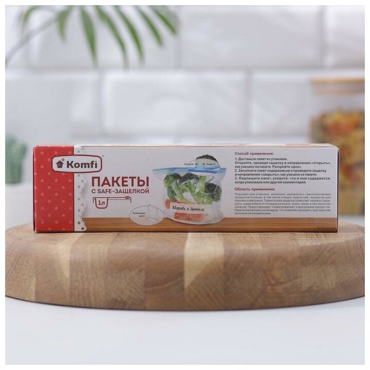 Пакеты упаковочные с замком-слайдером Komfi, пищевые пакеты для заморозки с застежкой 1л 15шт и 2л 10шт