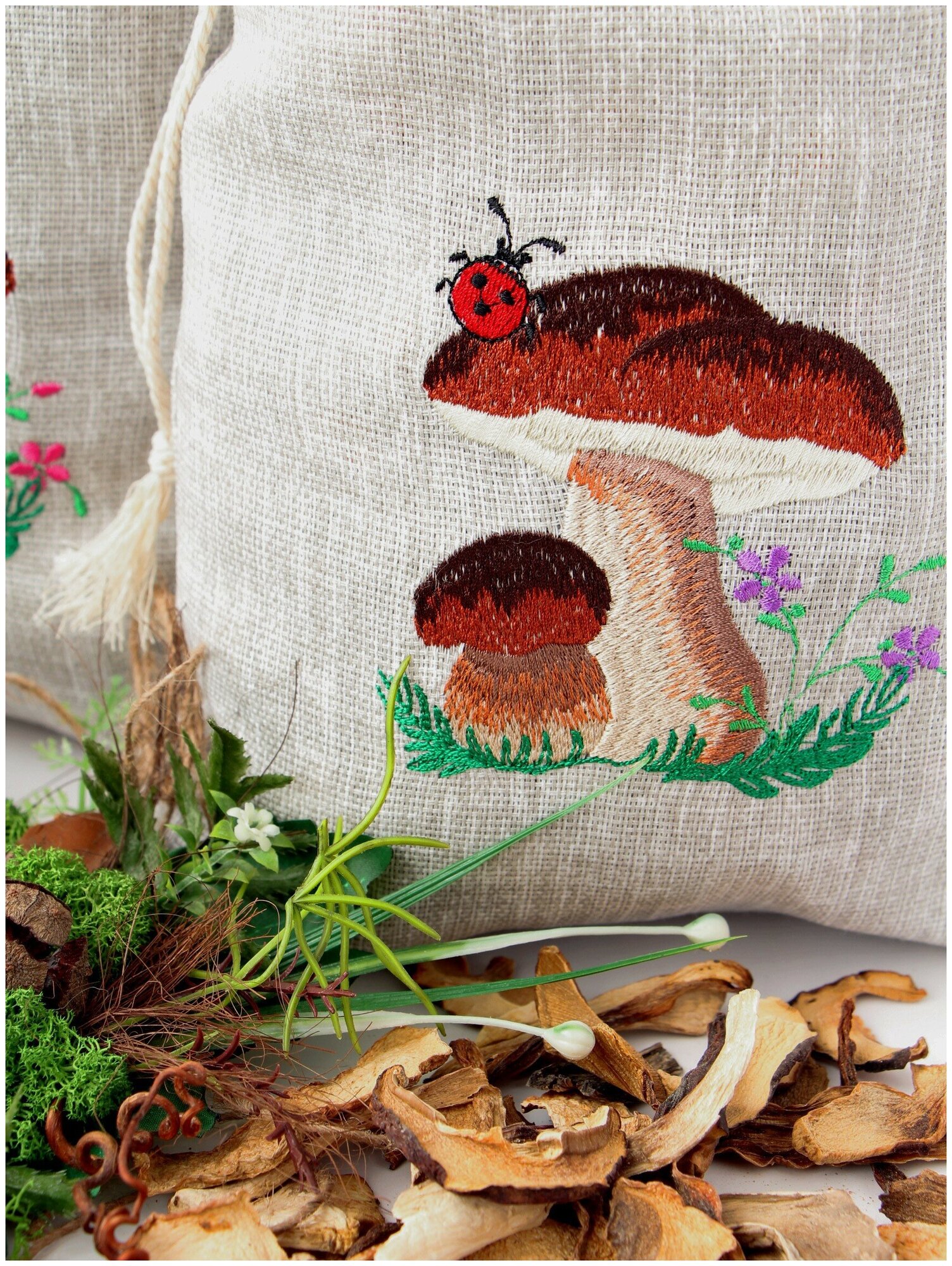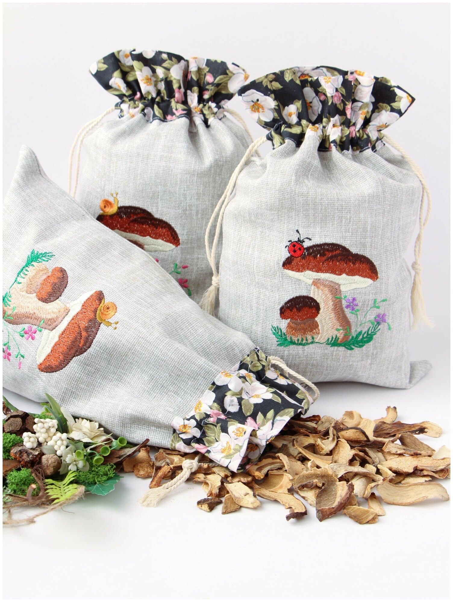 Набор мешочков для хранения продуктов Felante с вышивкой "Грибы" 3шт. информация: