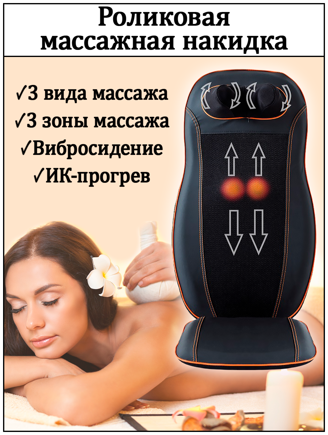 Вибромассажная накидка с роликами для шеи и ИК-прогревом Neck&Back Massage Cushion FITSTUDIO черная информация: