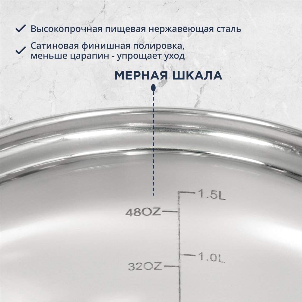 Ковш кухонный с крышкой из нержавеющей стали 1,9 л информация: