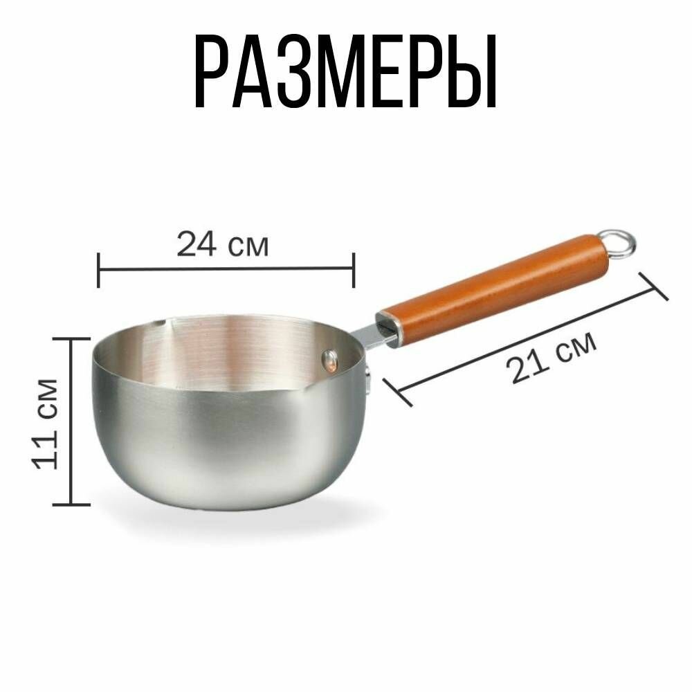 Кастрюля-ковш из нержавеющей стали для всех типов плит, с деревянной ручкой, 3.5 л. информация: