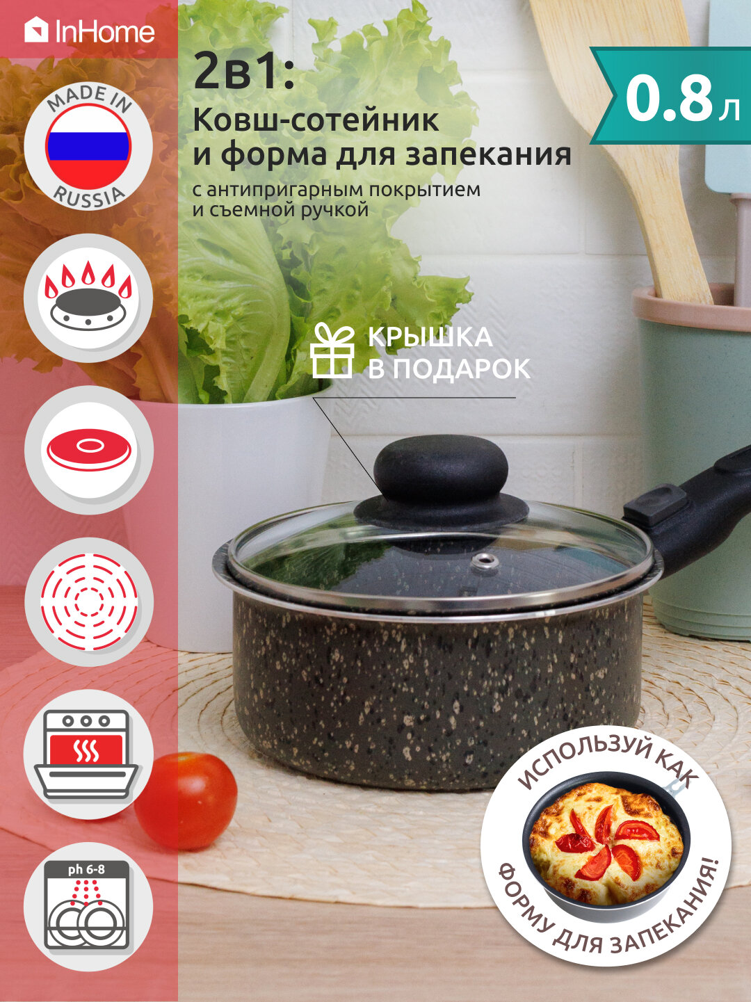 Ковш сотейник кухонный с крышкой 0,8 л InHome IELM/1.2 825 ₽