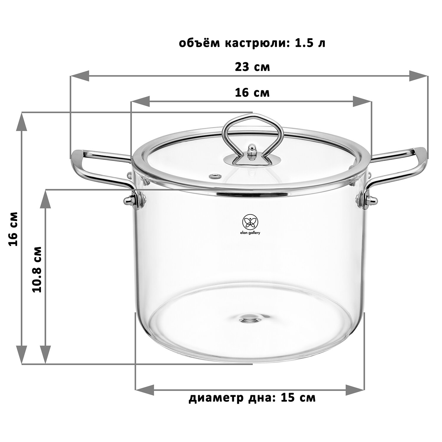 Кастрюля 1,5 л Elan Gallery Crystal glass, 23х16х16 см, с крышкой информация: