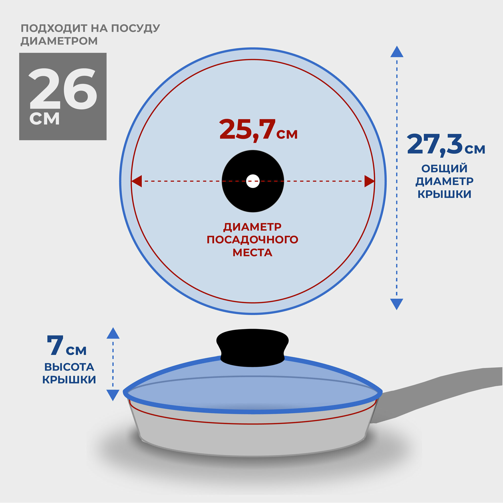 Крышка для сковороды 26 см, стеклянная крышка для кастрюли 26 см, ненагревающаяся ручка, Hitt информация: