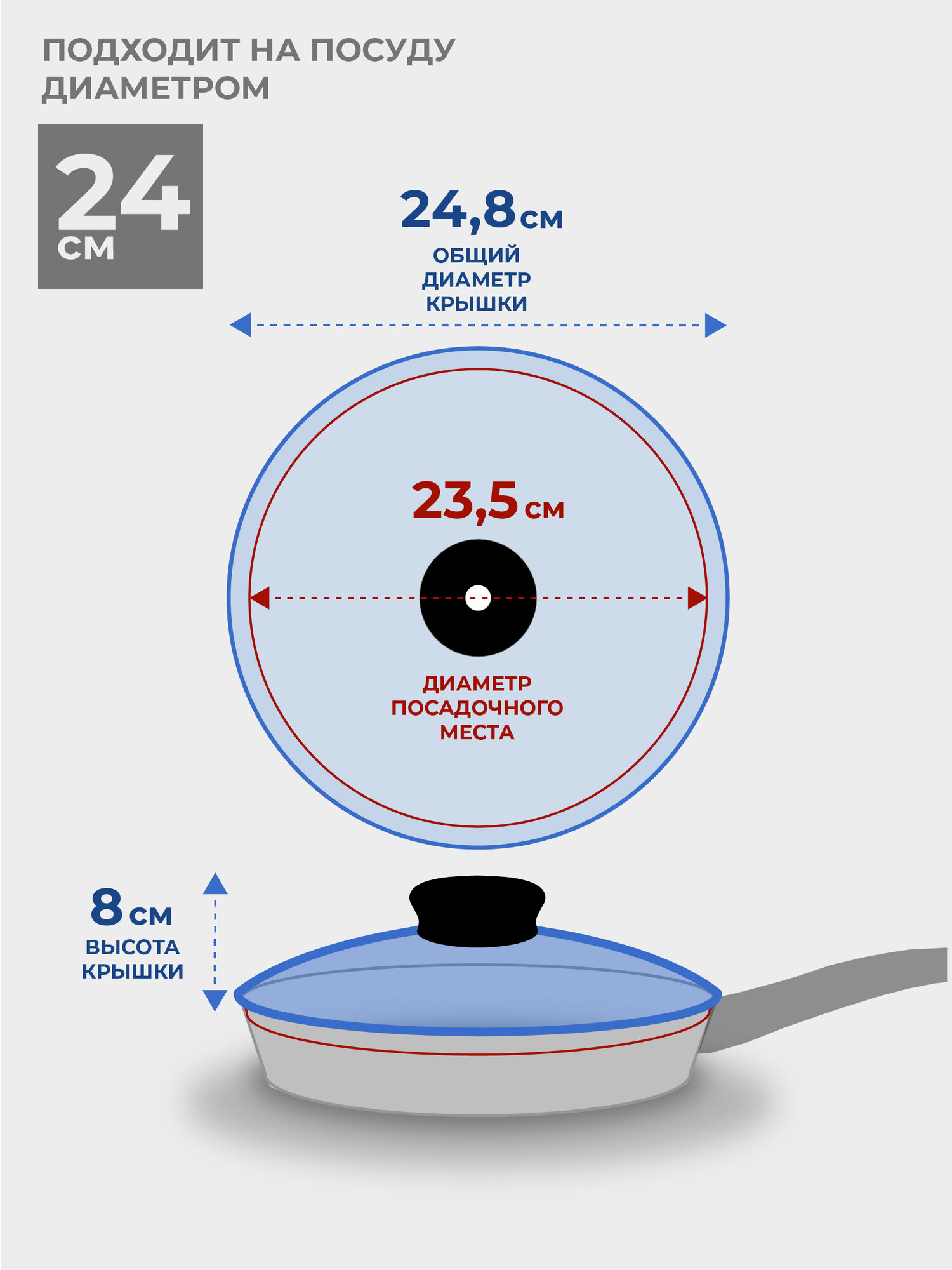Крышка стеклянная Hitt для сковороды и кастрюли 24 см информация: